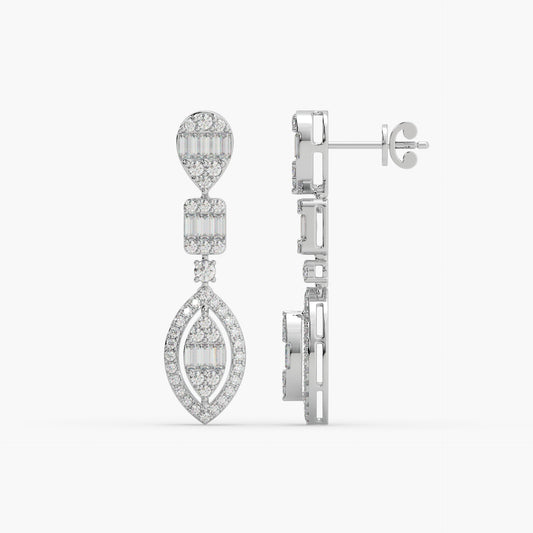 Guru Jewel's Round And Bugget Diamond Studded Long Silver Earrings For Her