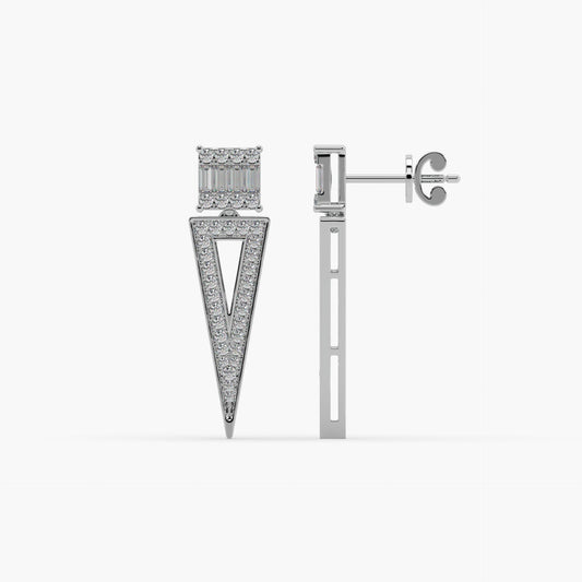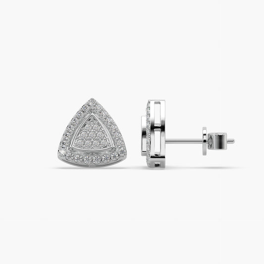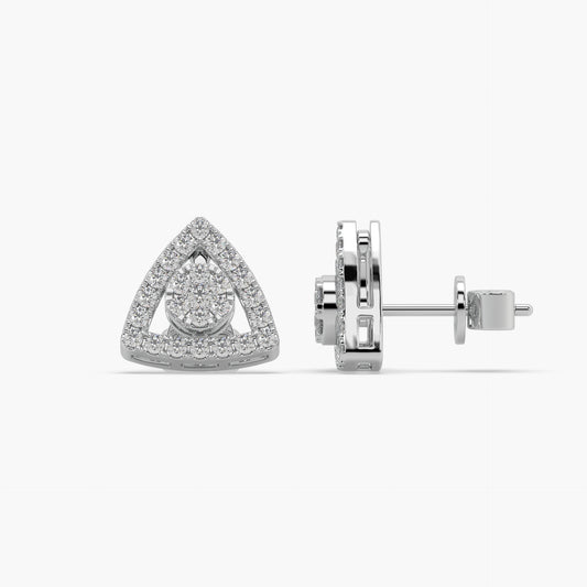Guru Jewel's Round Diamond Studded Triangle Shaped Silver Earrings For Her