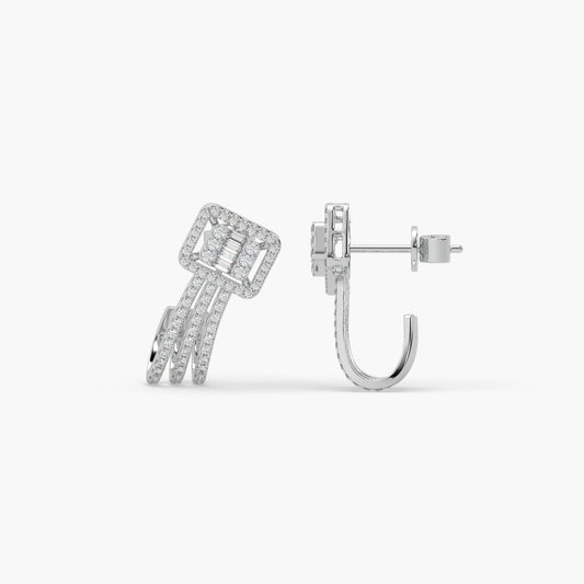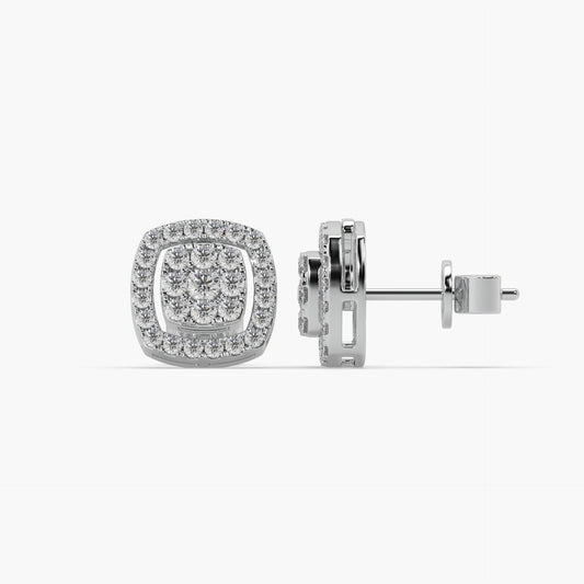 Guru Jewel's Round Diamond Studded Exclusive Square Shaped Silver Earrings For Her