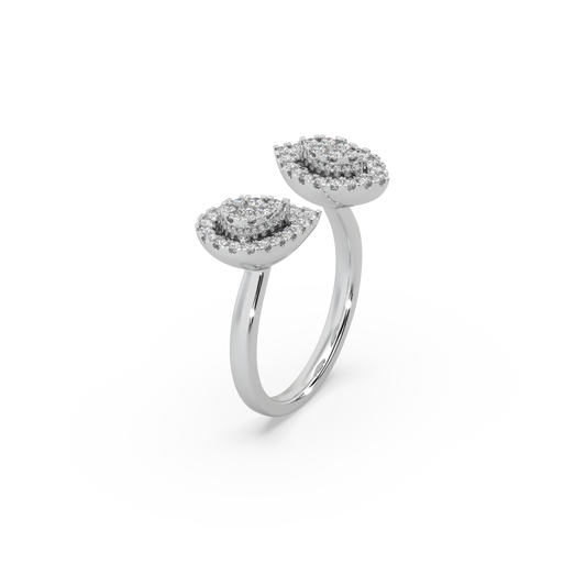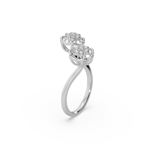 Exclusive Twin Piece 925 Silver And Round Diamond Studded Ladies Ring For Her