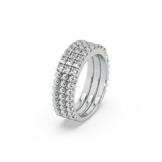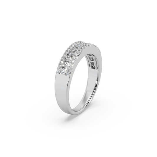 Glamorous 3 Band 925 Silver And Round Diamond Studded Ladies Ring For Her