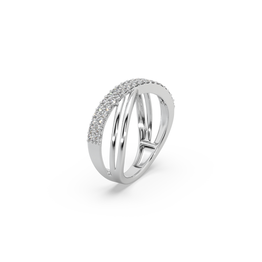 Attractive Twin Style 925 Silver And Diamond Studded Ladies Ring For Her