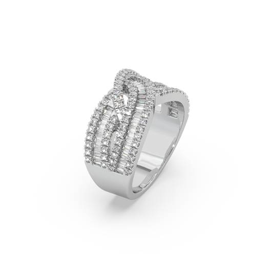 Guru Jewel's Round And Bugget Diamond Studded Devastating Silver Ring For Her