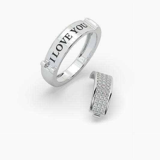 Guru Jewel's Round Diamond Studded " I LOVE YOU " Silver Ring For Her