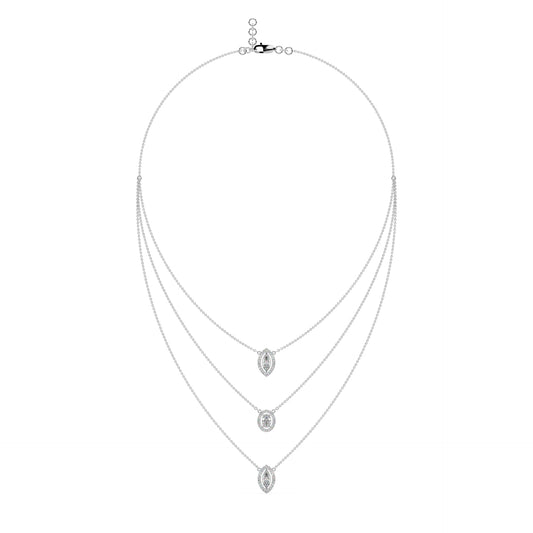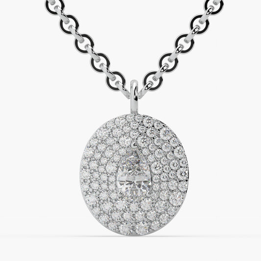 Guru Jewel's Oval And Marquee Fancy Diamond Studded Devastating 2 Line Silver Pendent For Her