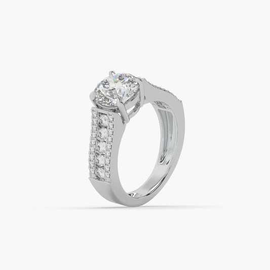 Guru Jewel's Round Solitaire Diamond Studded Exclusive Engagement Silver Sing For Her