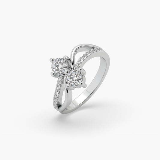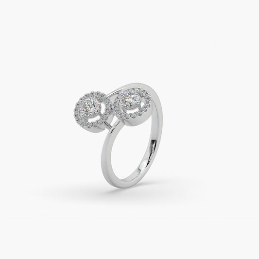 Guru Jewel's Twin Round Solitaire Diamond Studded Silver Ring For Her
