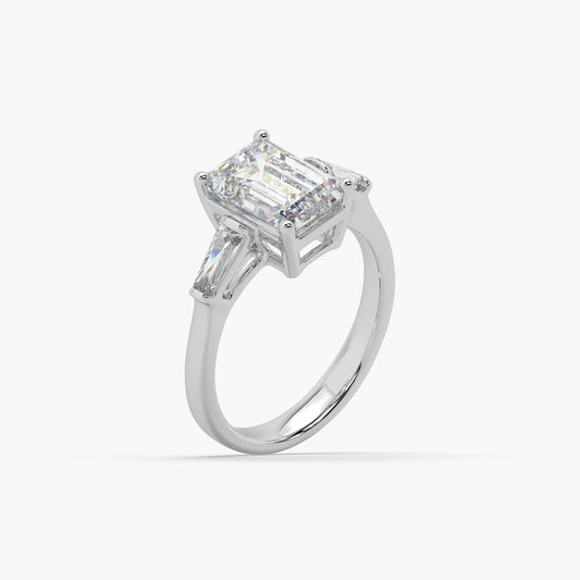 Guru Jewel's Emerald And Round Diamond Studded Silver Ring For Her