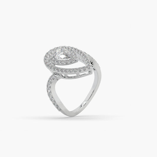 Guru Jewel's Fancy Pear Shaped And Round Diamond Studded Captivating Silver Ring For Her
