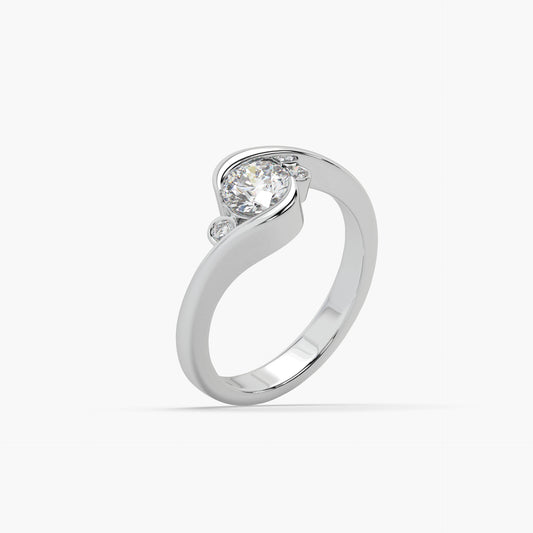 Guru Jewel's Round Solitaire Diamond Studded Silver Ring For Her