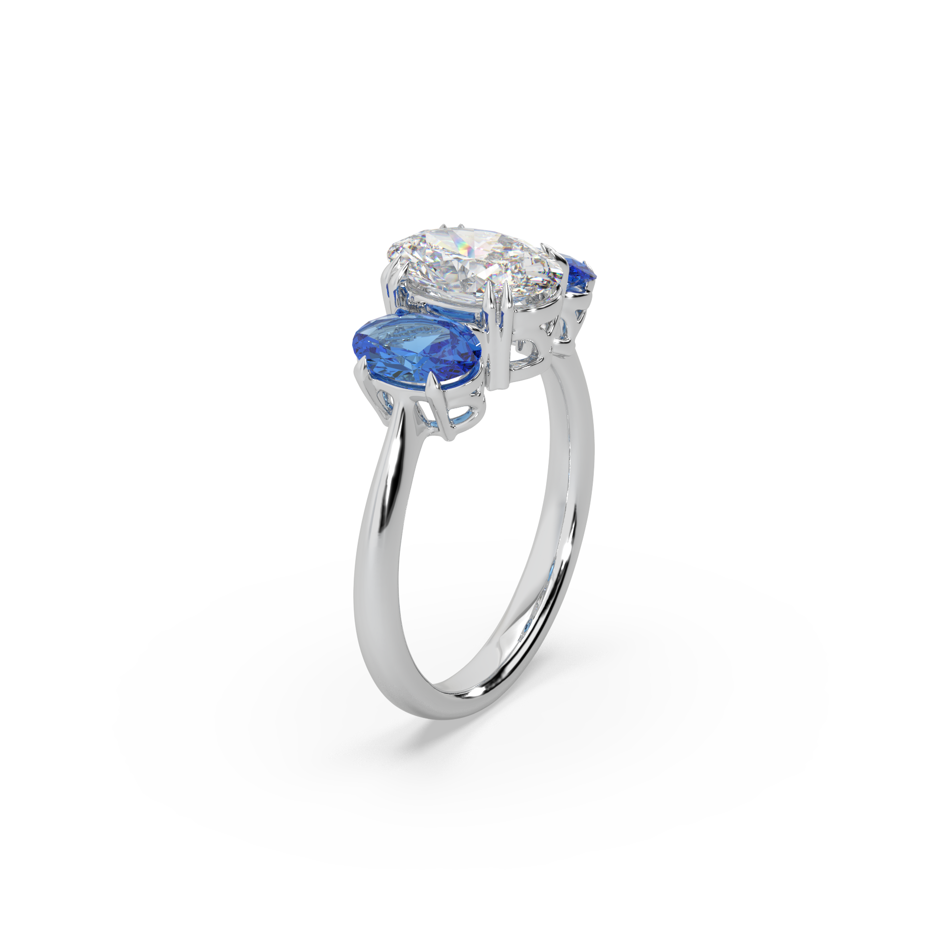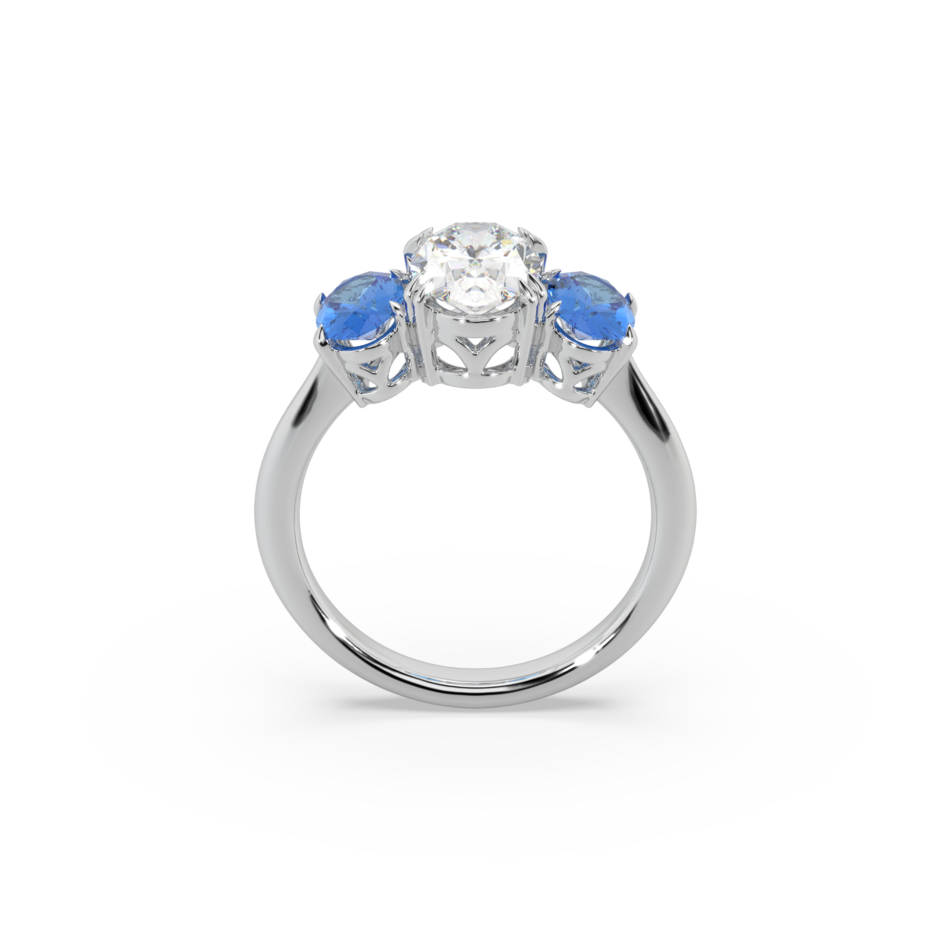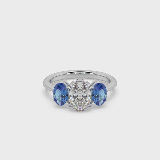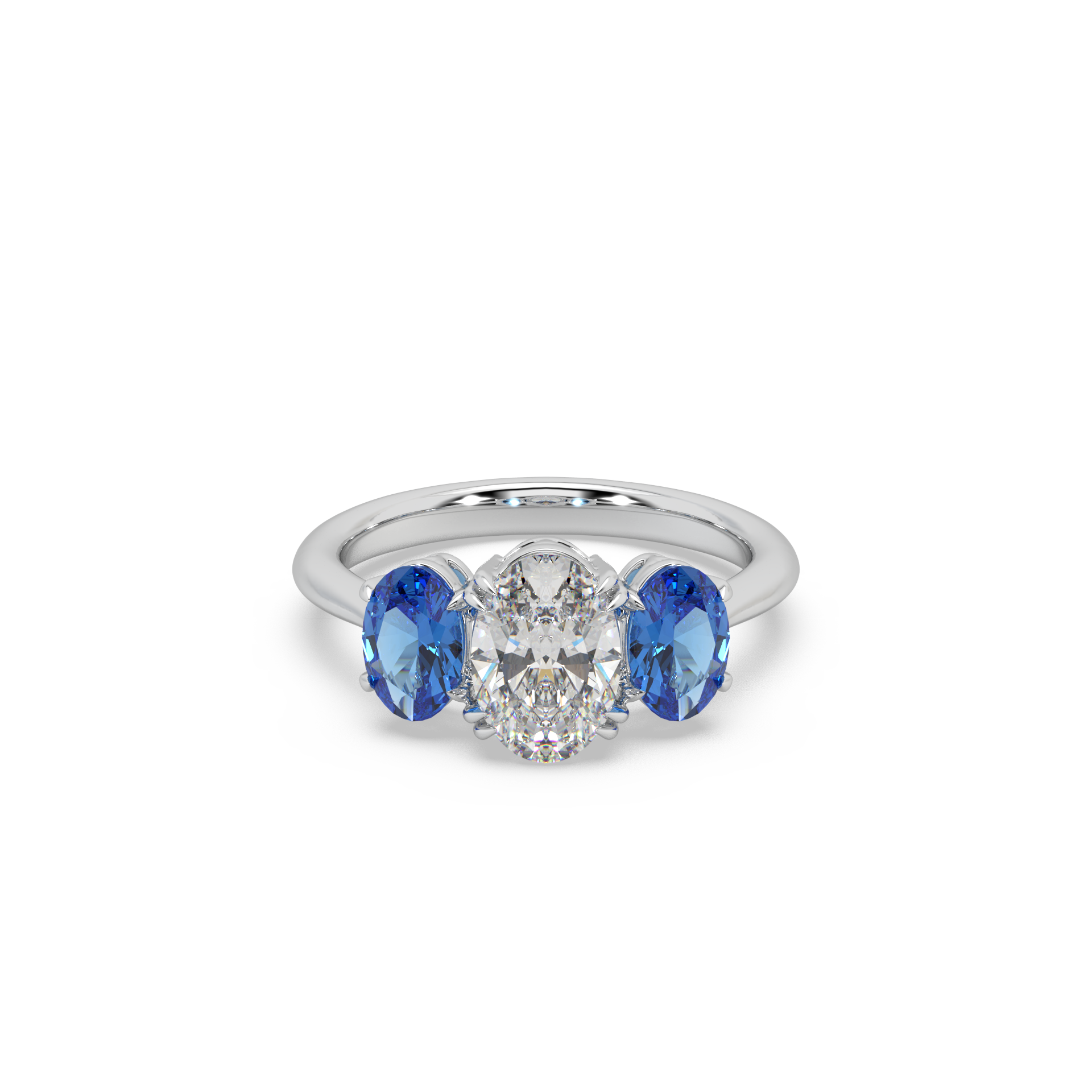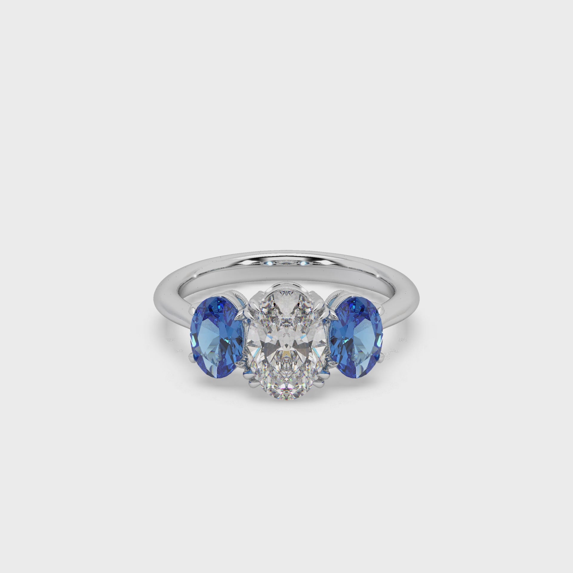 This Unique Three Oval Stone and Diamond Silver Ring for Her is the ultimate gift for celebrating life's milestones, making a magnificent statement, or expressing enduring commitment. It symbolizes love, devotion, and a sophisticated appreciation for artistic design.