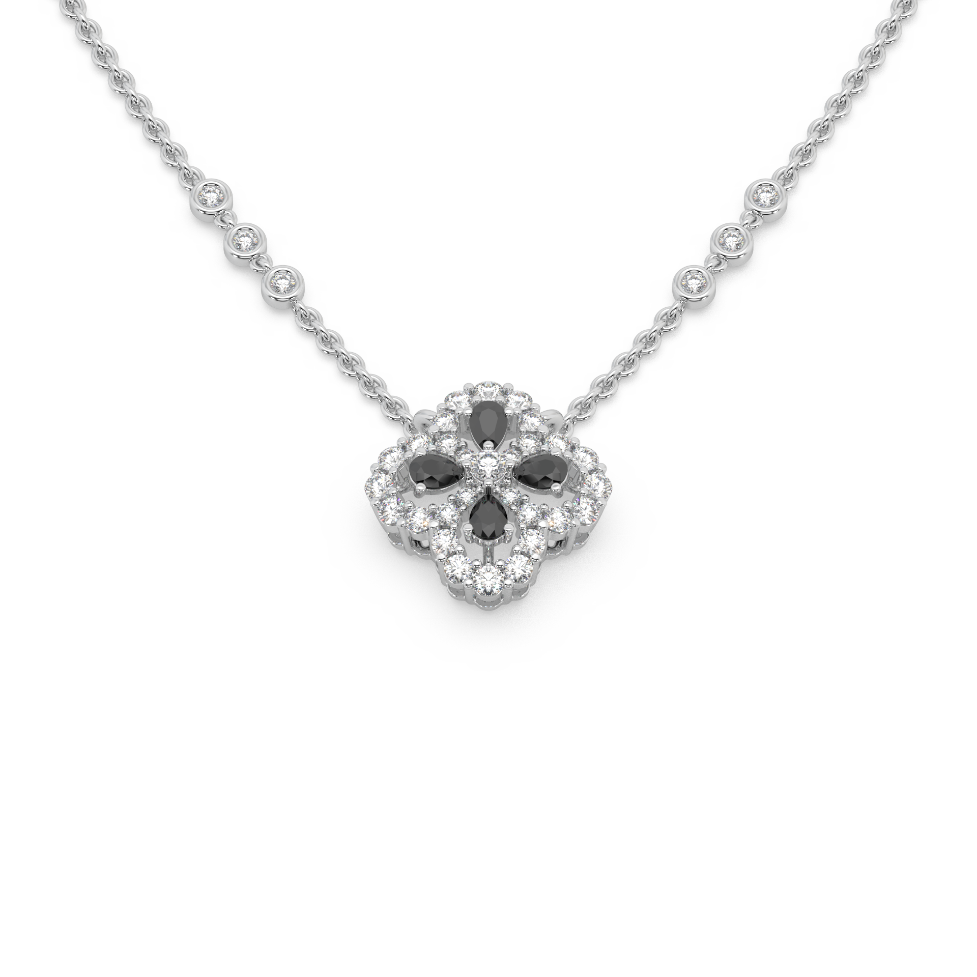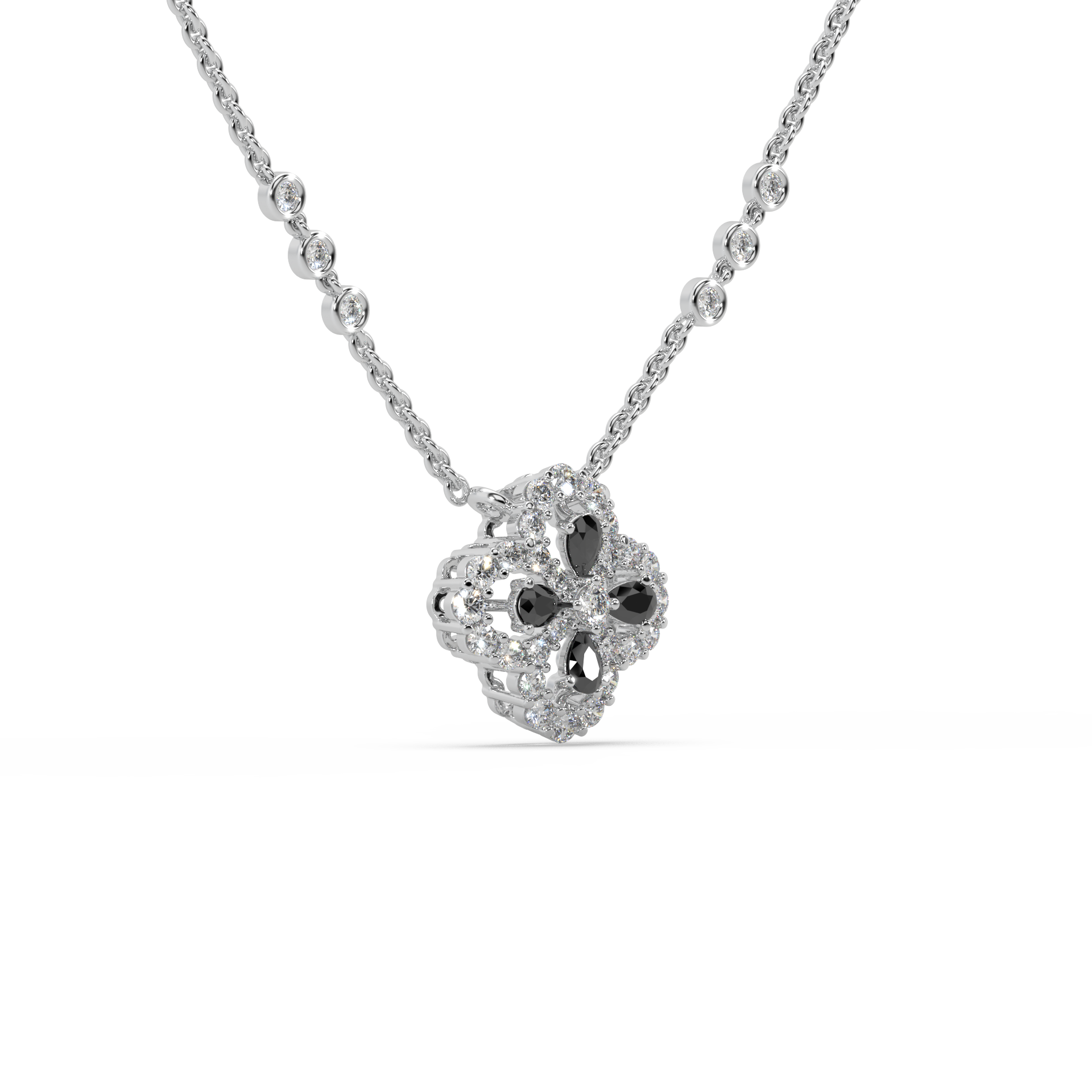 Expertly crafted from radiant 925 sterling silver, this pendant showcases a striking visual dynamic. The intense, symmetrical fire of Round Diamonds (or high-quality simulants) is perfectly contrasted by the deep, intriguing presence of a Black Stone accent (such as black onyx or a dark simulant). This artistic fusion of light and darkness and the meticulous setting ensure a continuous, vibrant shimmer, making the design utterly fascinating and distinctly eye-catching with its dramatic silhouette.