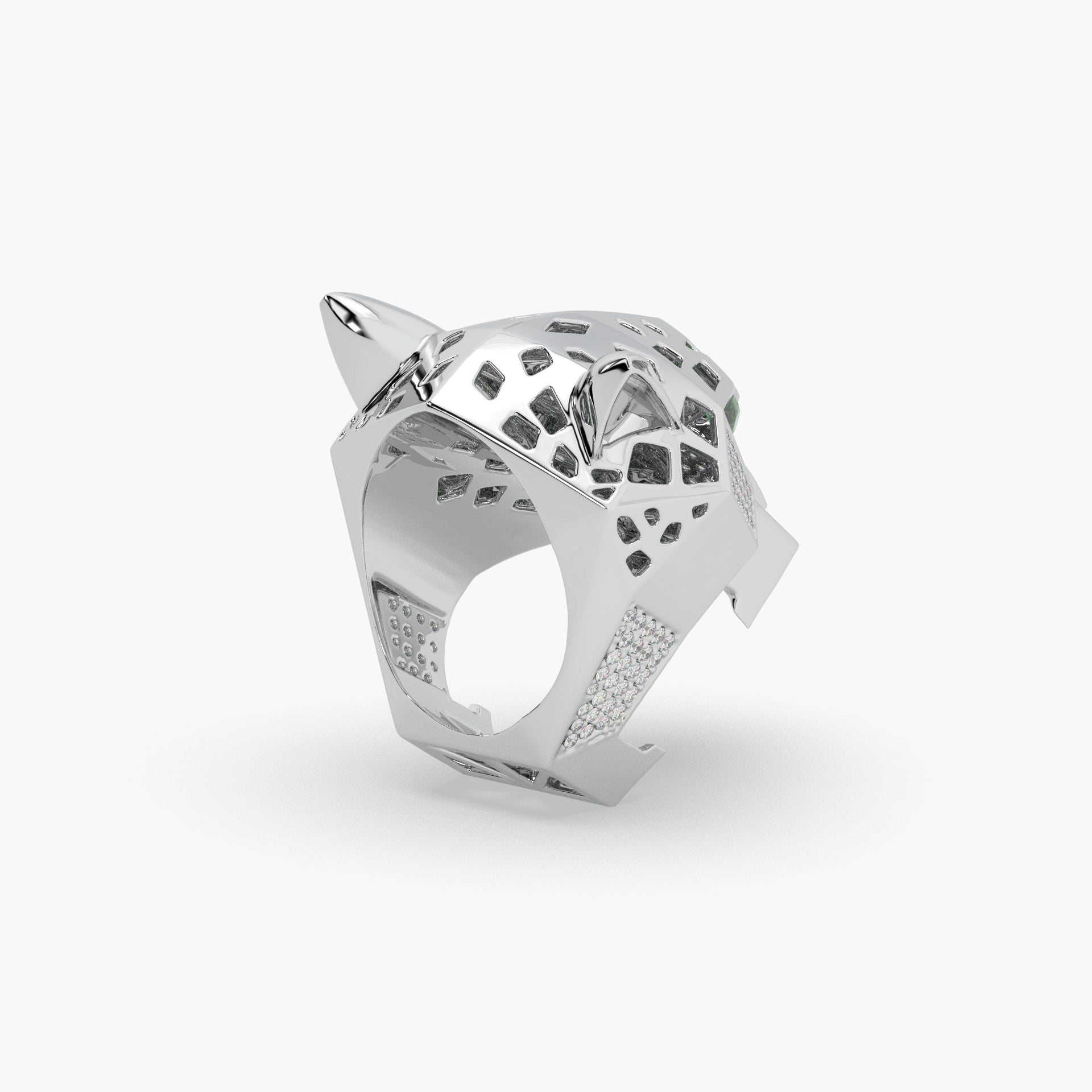 Expertly crafted from robust, high-polish 925 sterling silver, this ring features the bold Panther Style design. The intricate details of the animal are meticulously studded with a generous quantity of brilliant Round Diamond Studs. The high-density setting and unique, artistic theme ensure a truly astonishing visual impact that is both sophisticated and dramatically eye-catching.