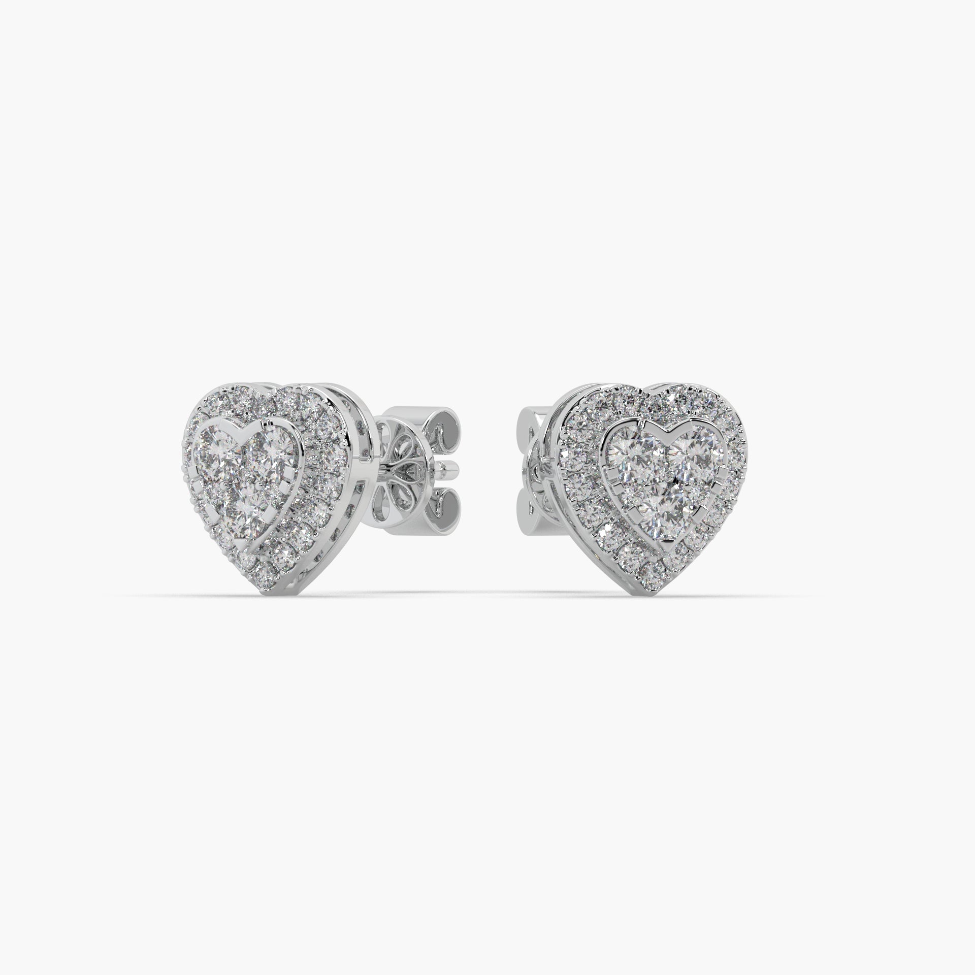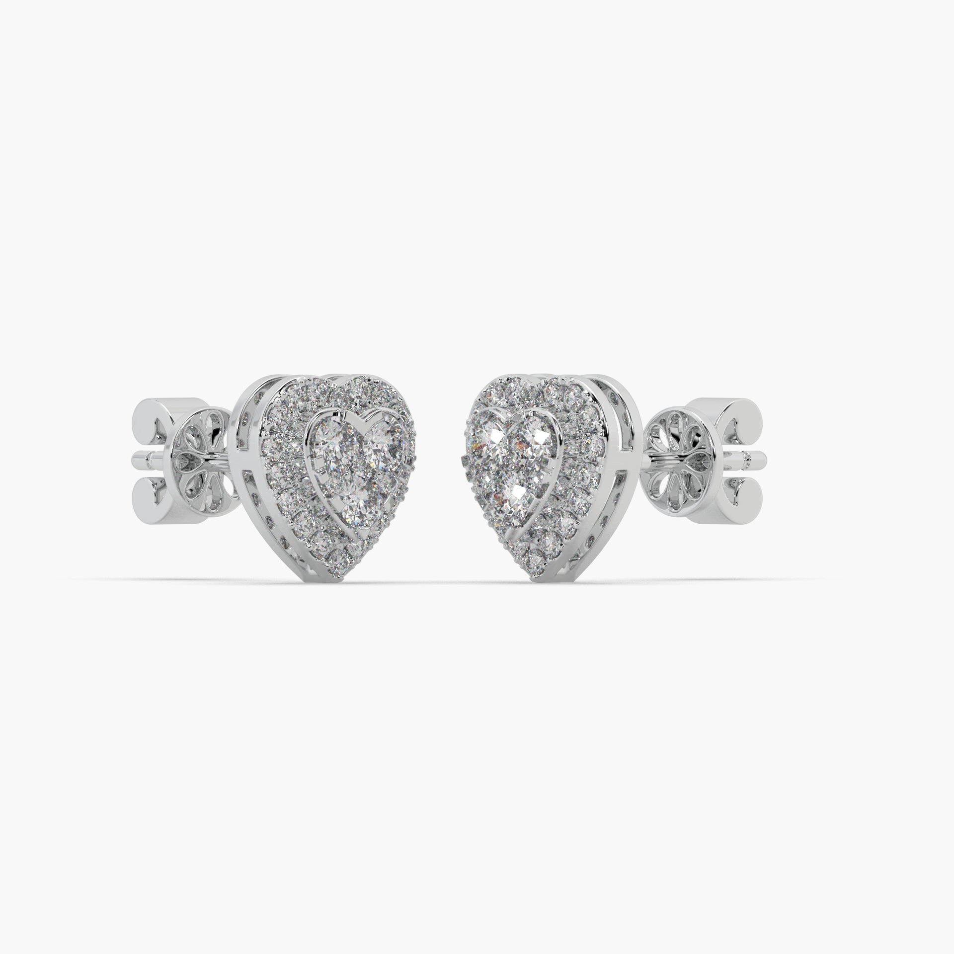 Expertly crafted from high-polish 925 sterling silver, each earring showcases a beautifully formed Heart Shape, meticulously studded with brilliant diamond studs. The delicate yet distinct silhouette and the vibrant sparkle create an undeniably attractive piece that gracefully frames her face and conveys heartfelt affection.