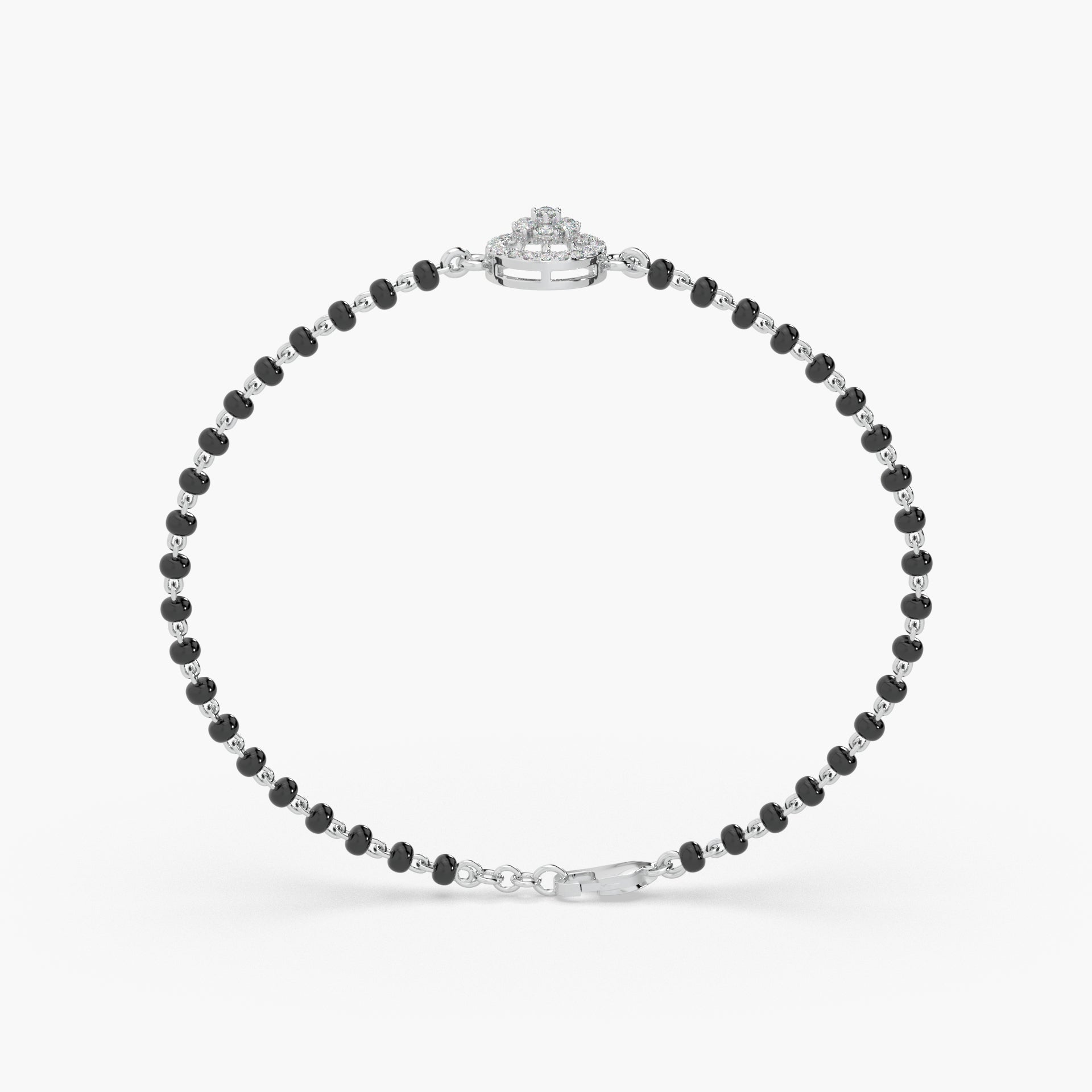 Exquisitely crafted from high-quality 925 sterling silver, this bracelet beautifully incorporates the traditional Mangalsutra elements—typically the auspicious black beads or accents—alongside a focal point of brilliant, meticulously set diamond studs. The subtle yet dazzling sparkle of the diamonds elevates this piece, making it a truly beautiful silver Mangalsutra bracelet.