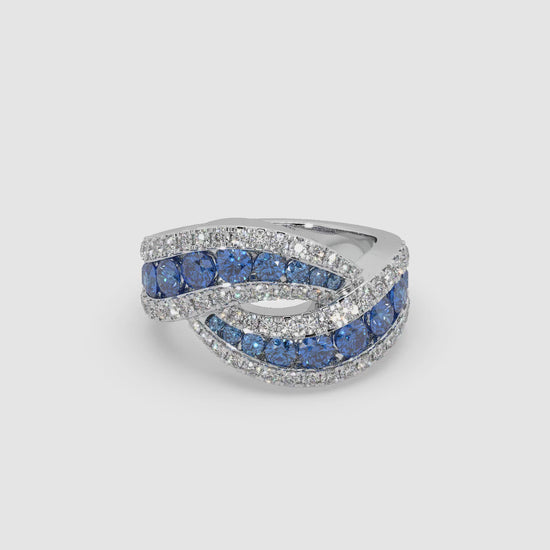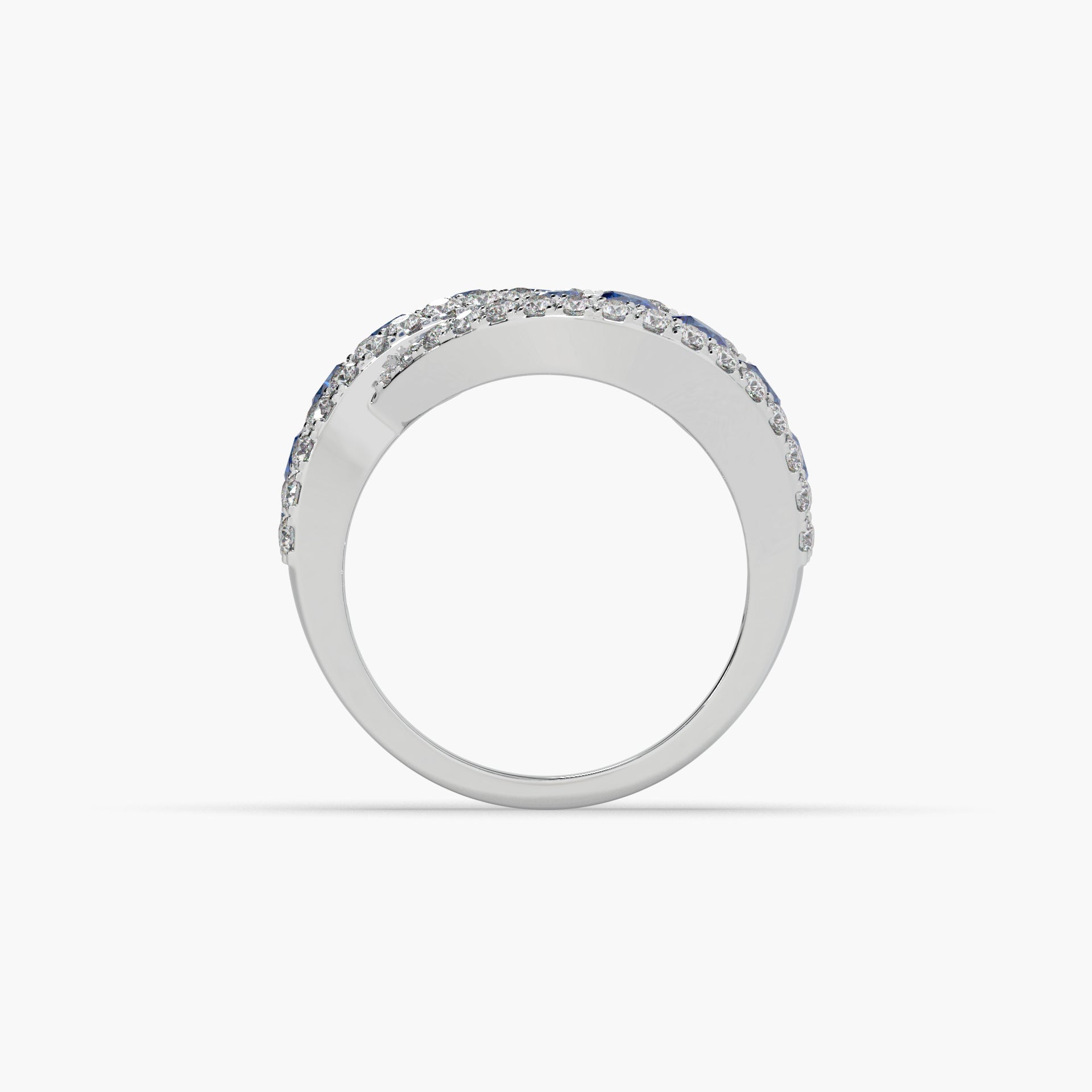 Adorn her hand with the rich, sophisticated color and sparkle of the Guru Jewel's Blue Sapphire and Round Diamond Studded Silver Ring. This elegant piece beautifully pairs the regal deep blue of sapphire with the timeless brilliance of diamonds.
