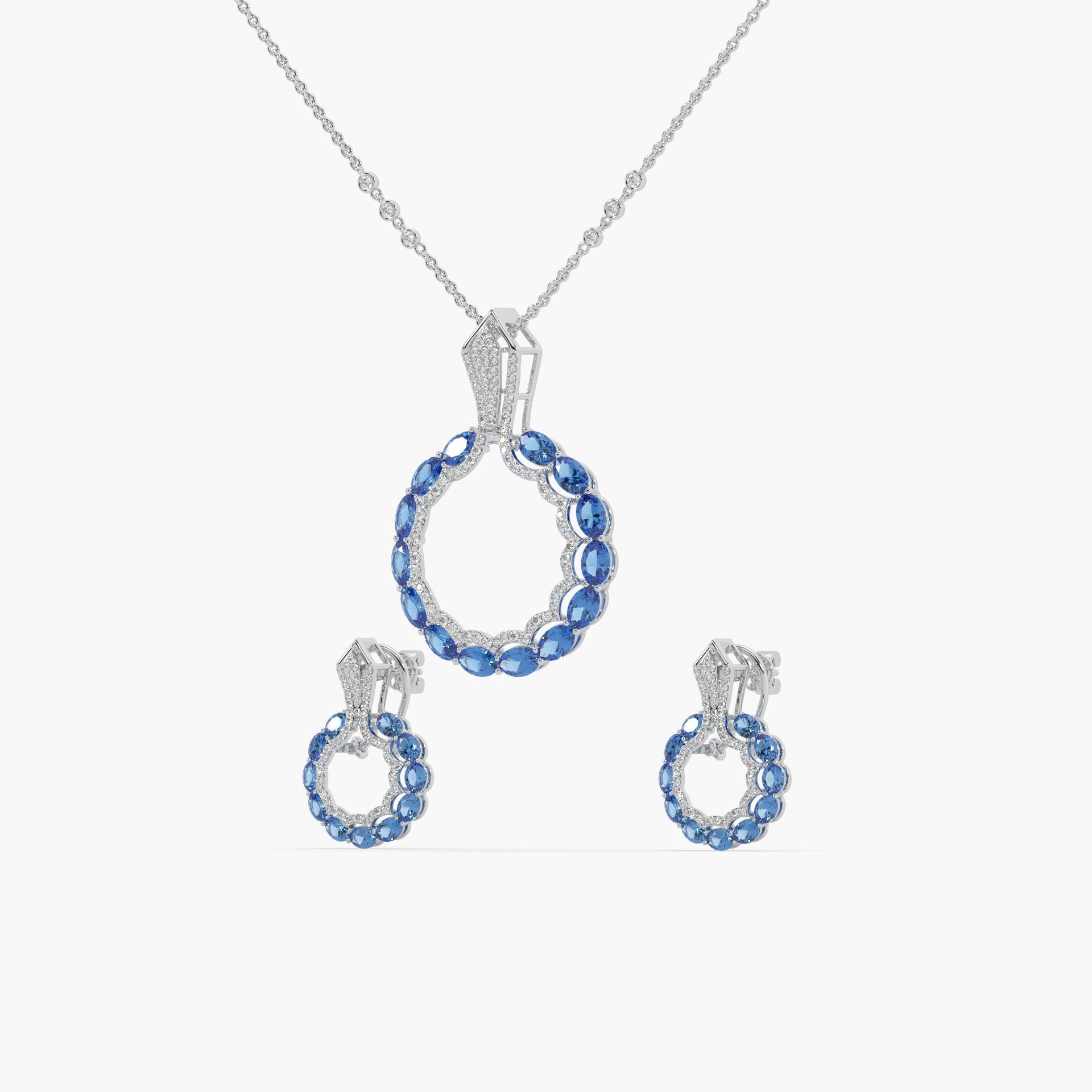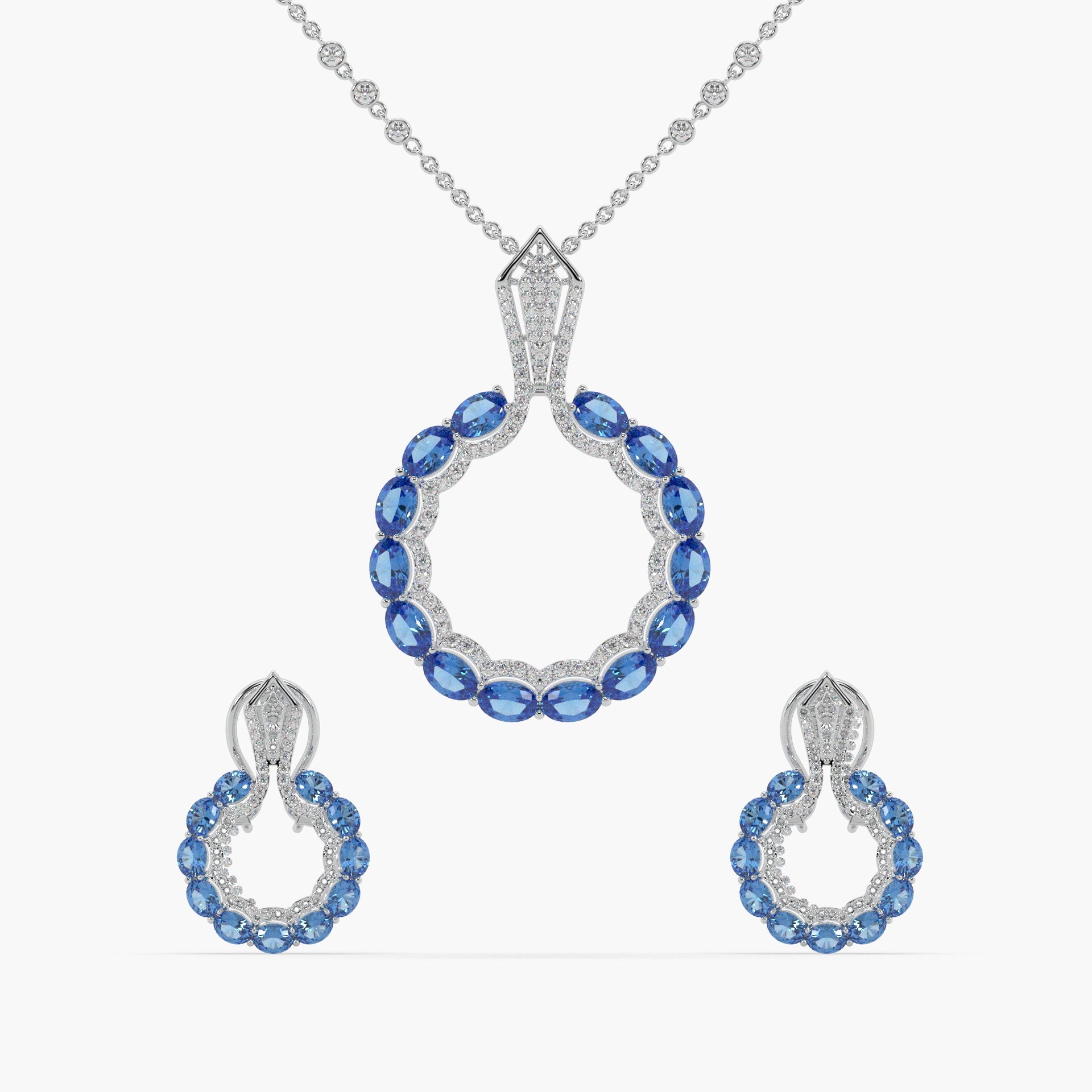 This Blue Stone and Diamond Silver Pendant Set for her is a spectacular accessory for adding a distinguished touch of color and luxury to any outfit. It's an ideal gift for special occasions, perfect for those who cherish both colorful gemstones and the timeless elegance of diamonds.