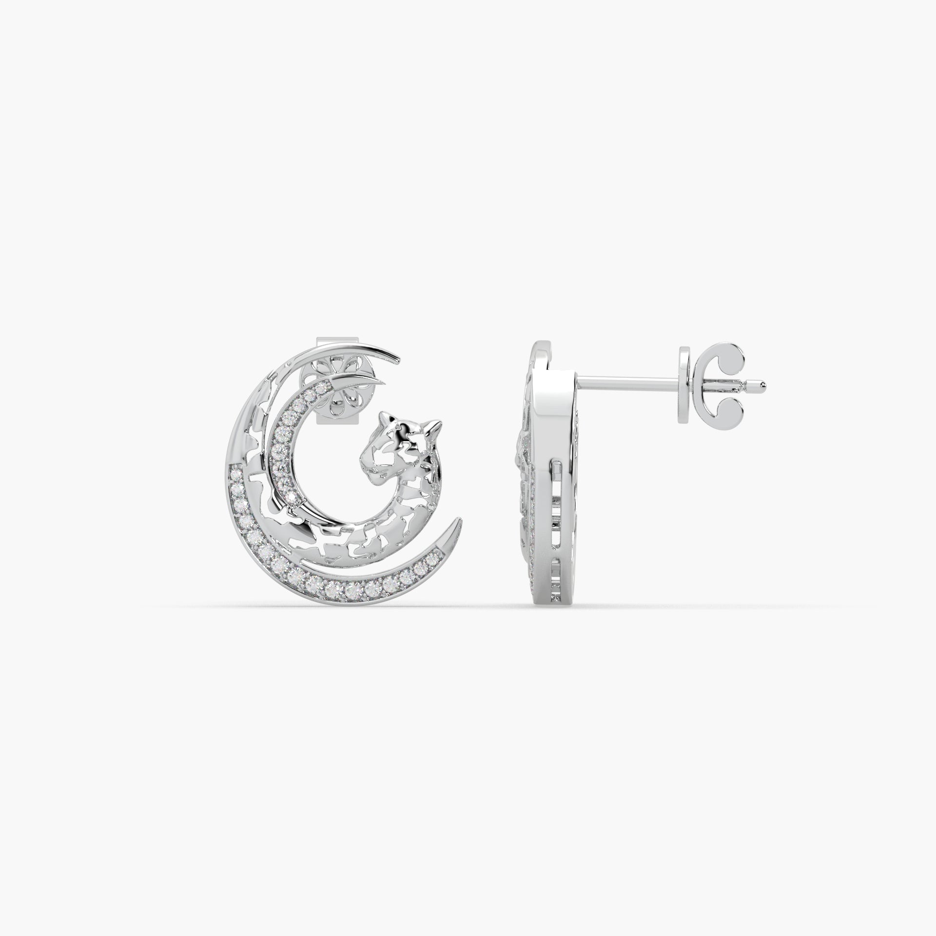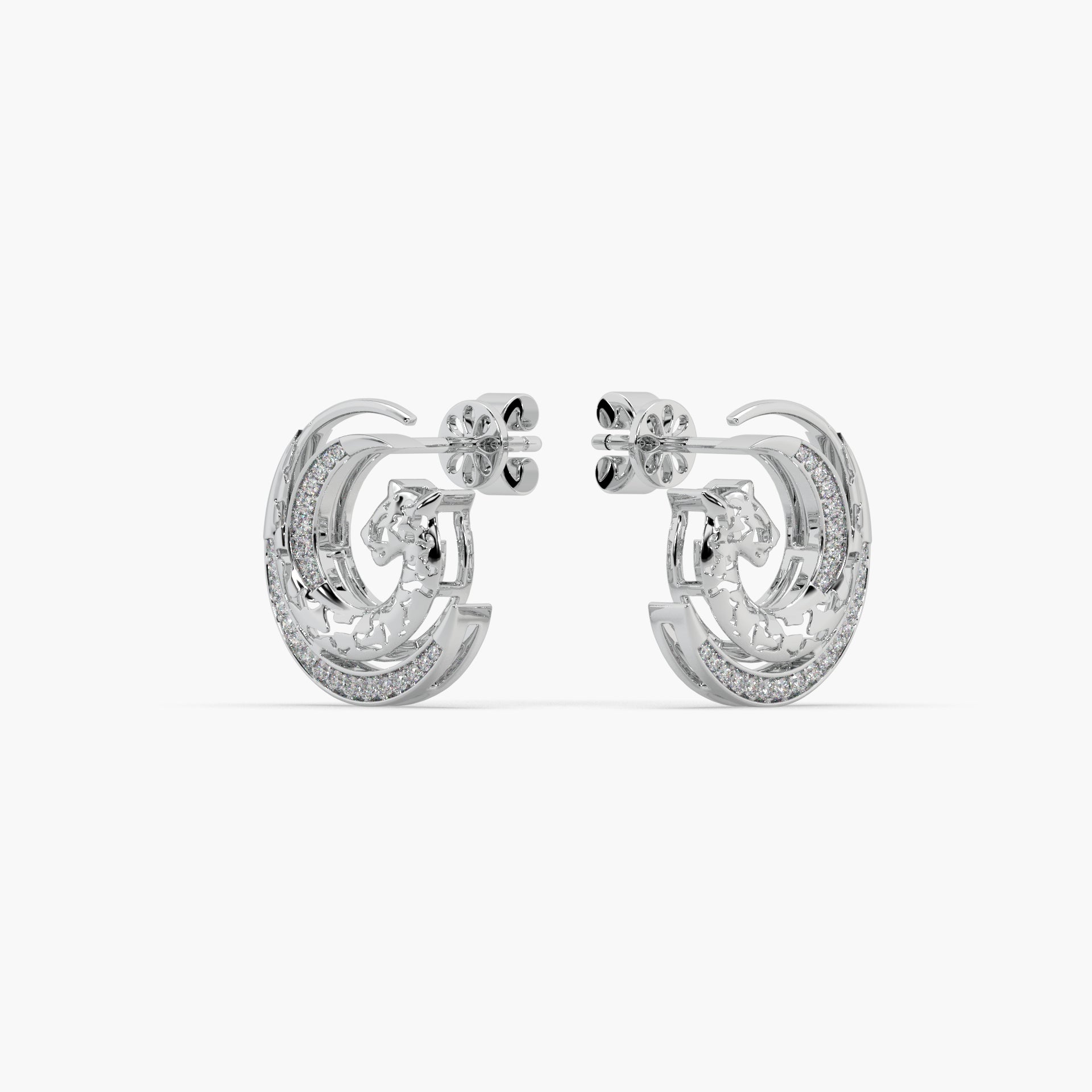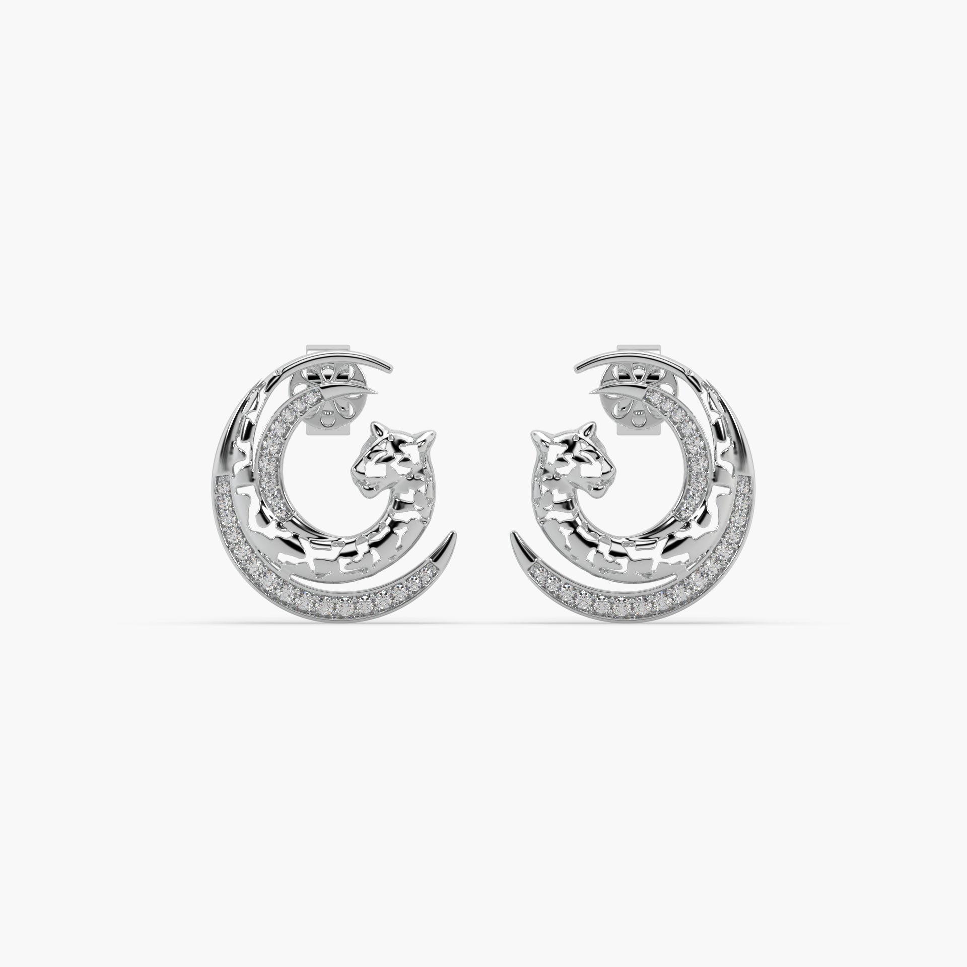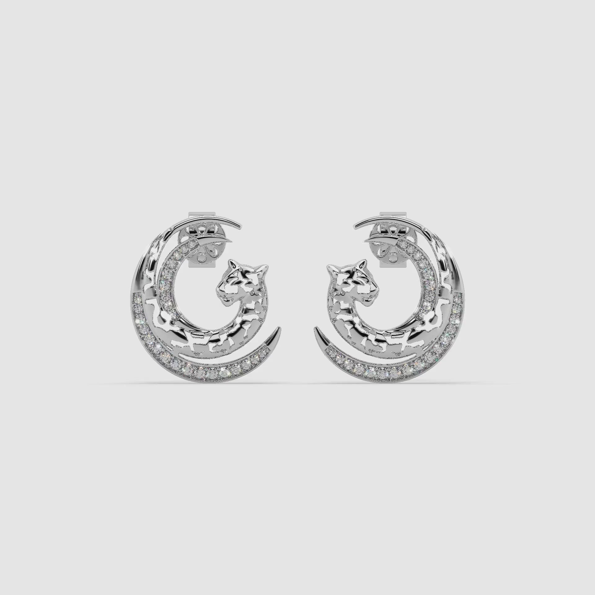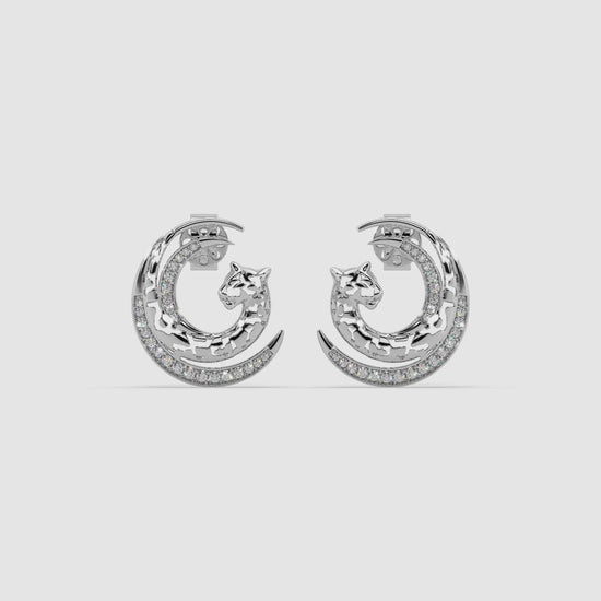 Expertly crafted from high-polish silver (likely 925 sterling silver, though not specified), each earring brings the powerful Panther Pattern to life, fully studded with brilliant, carefully set diamond studs. The precise arrangement of the stones follows the animal's sleek contours, creating a mesmerizing, captivating sparkle that adds dramatic flair and draws the eye.