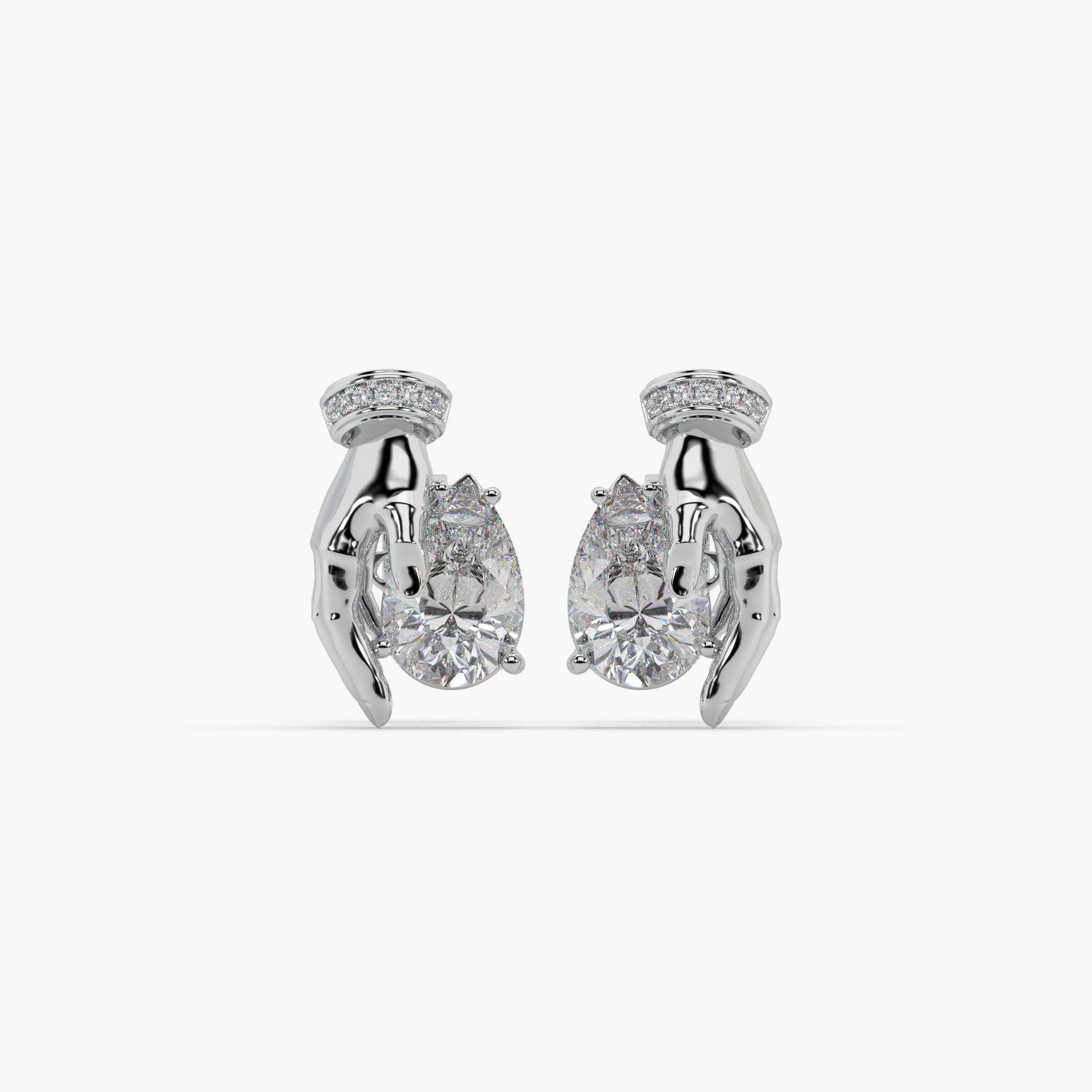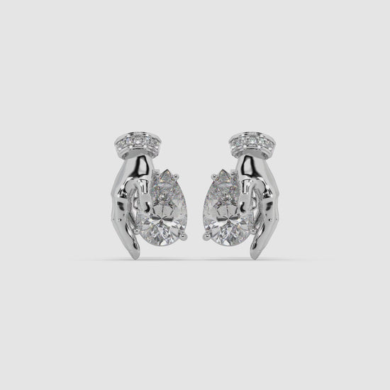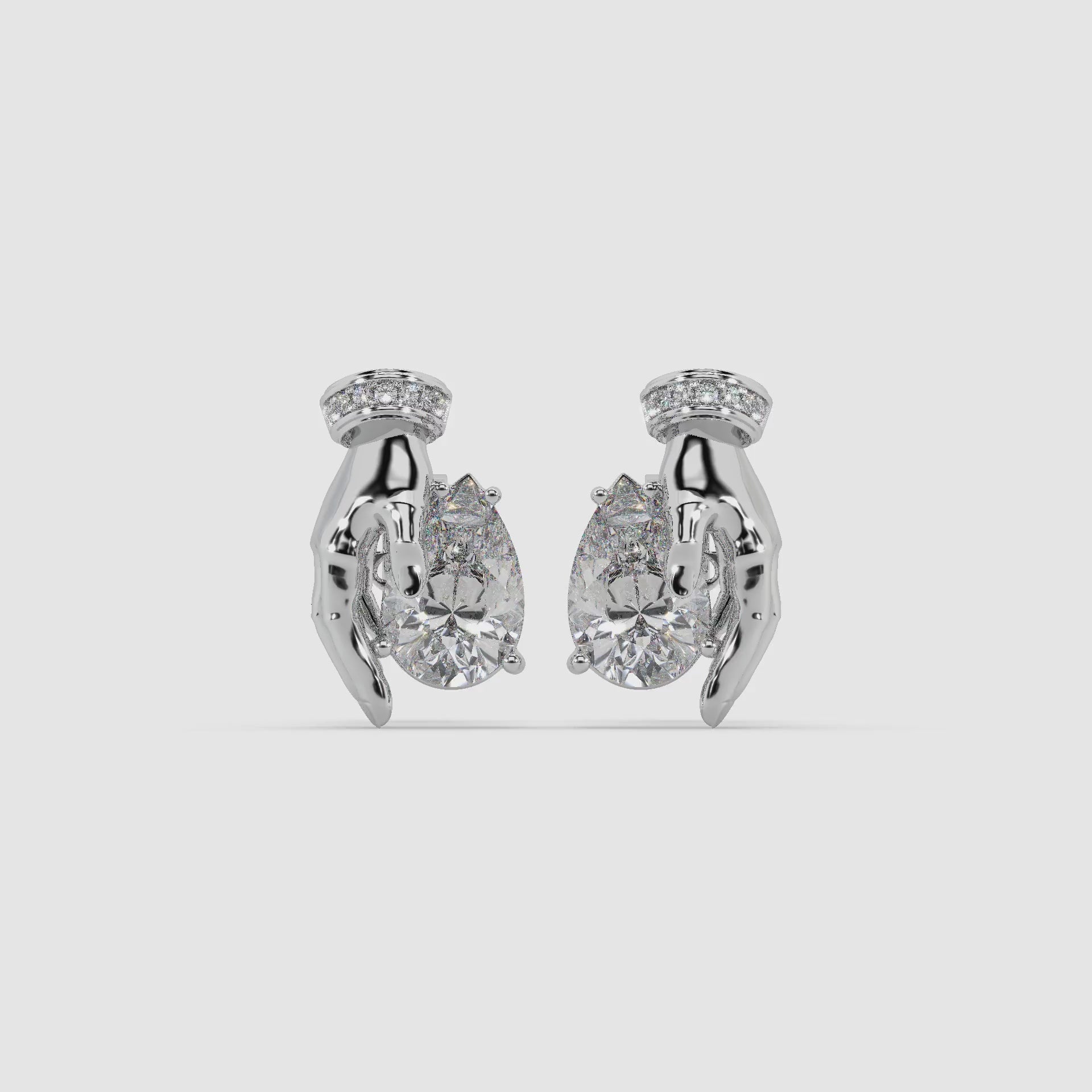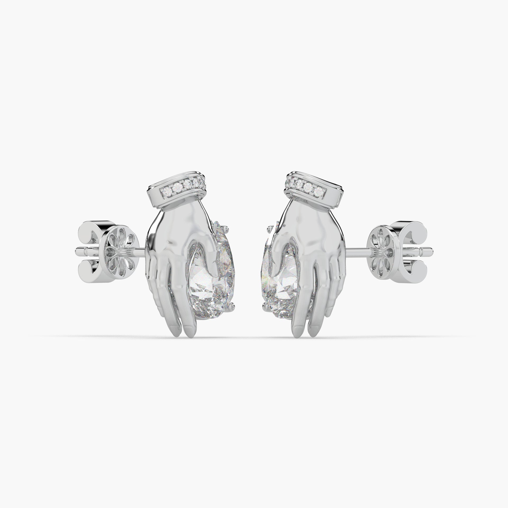 Guru Jewel's Devastating Hand Design Diamond Studded Silver Earrings For Her