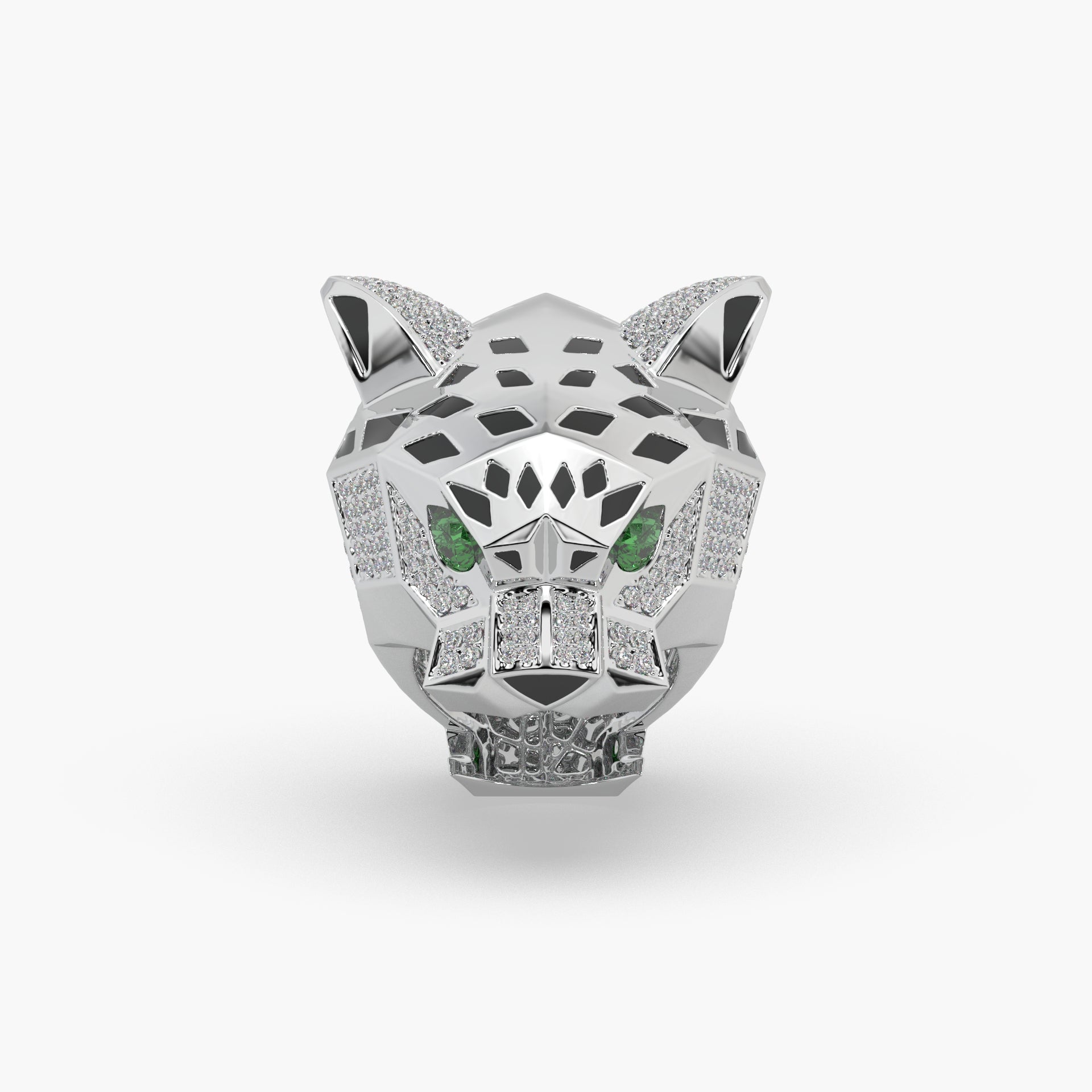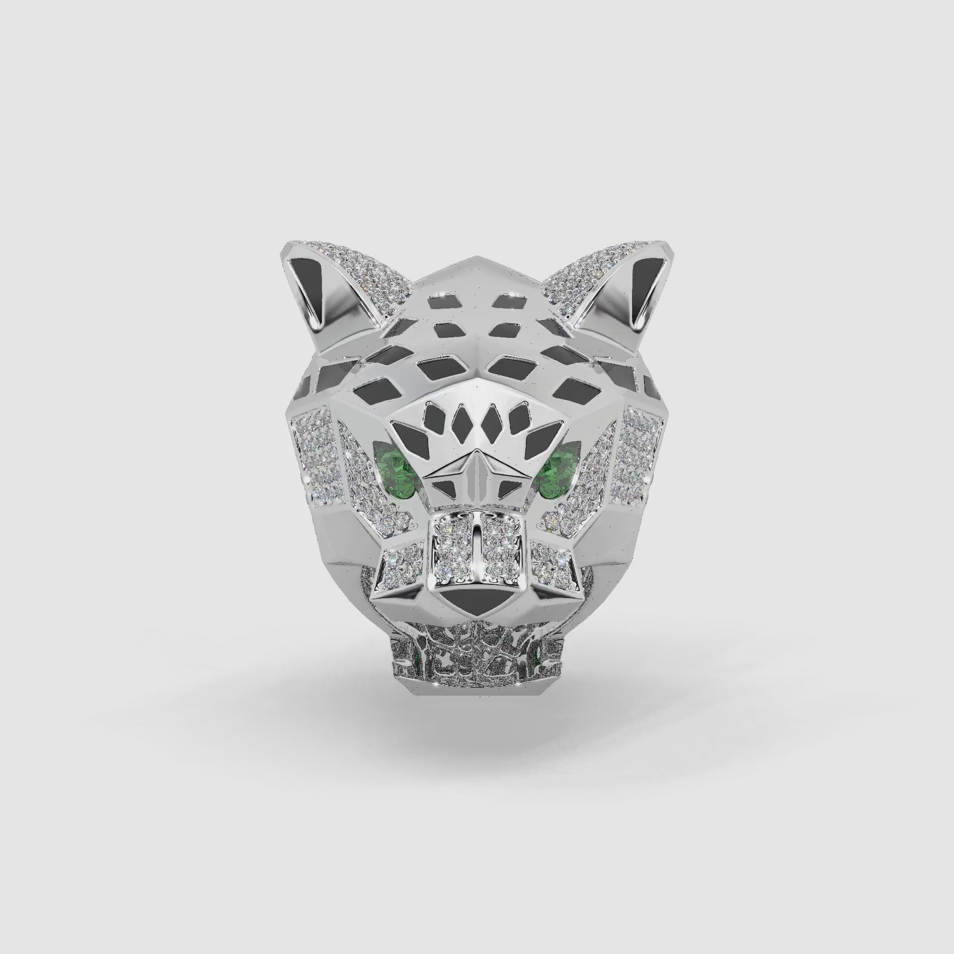Expertly crafted from robust, high-polish 925 sterling silver, this ring brings the fierce Panther Style to life. The intricate design is meticulously studded with brilliant Round Diamond Studs, often covering the animal's eyes or sleek contours. The high density of diamonds and the unique, daring theme ensure a truly devastating visual effect that is both avant-garde and unforgettable.