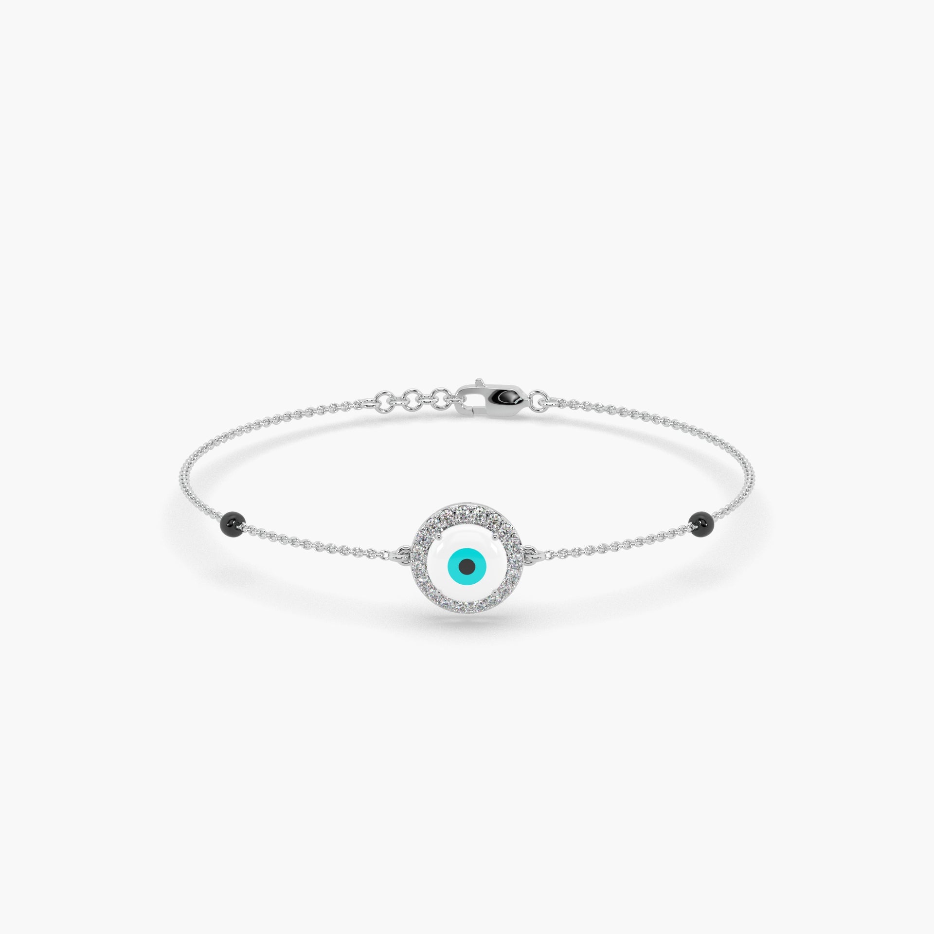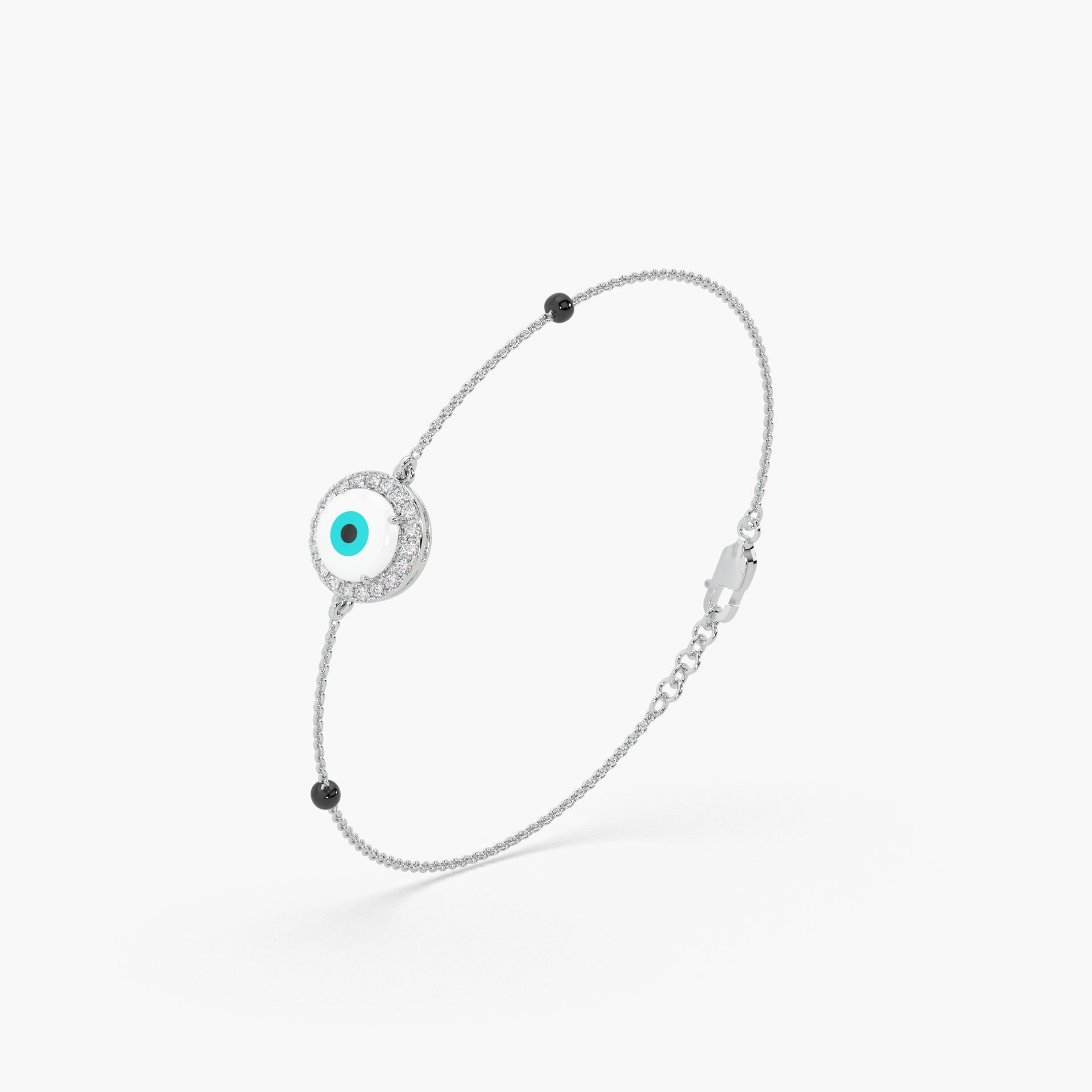 Expertly crafted from polished 925 sterling silver, the bracelet's "loose" design ensures a comfortable, fluid movement that drapes elegantly. The dazzling sparkle of the diamonds is perfectly complemented by the deep, meaningful gaze of the Evil Eye Stone, creating a silver diamond bracelet that is both a stylish accessory and a powerful talisman.