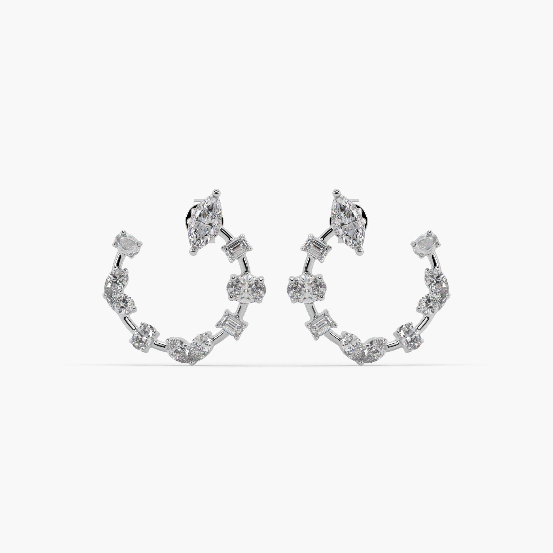 Make an unforgettable entrance with the Guru Jewel's Astonishing Fancy Diamond Studded Silver Earrings. These spectacular earrings are a true showcase of luxury and distinctive style, featuring a dazzling array of brilliant Fancy Shaped Diamonds (such as princess, marquise, or baguette cuts).