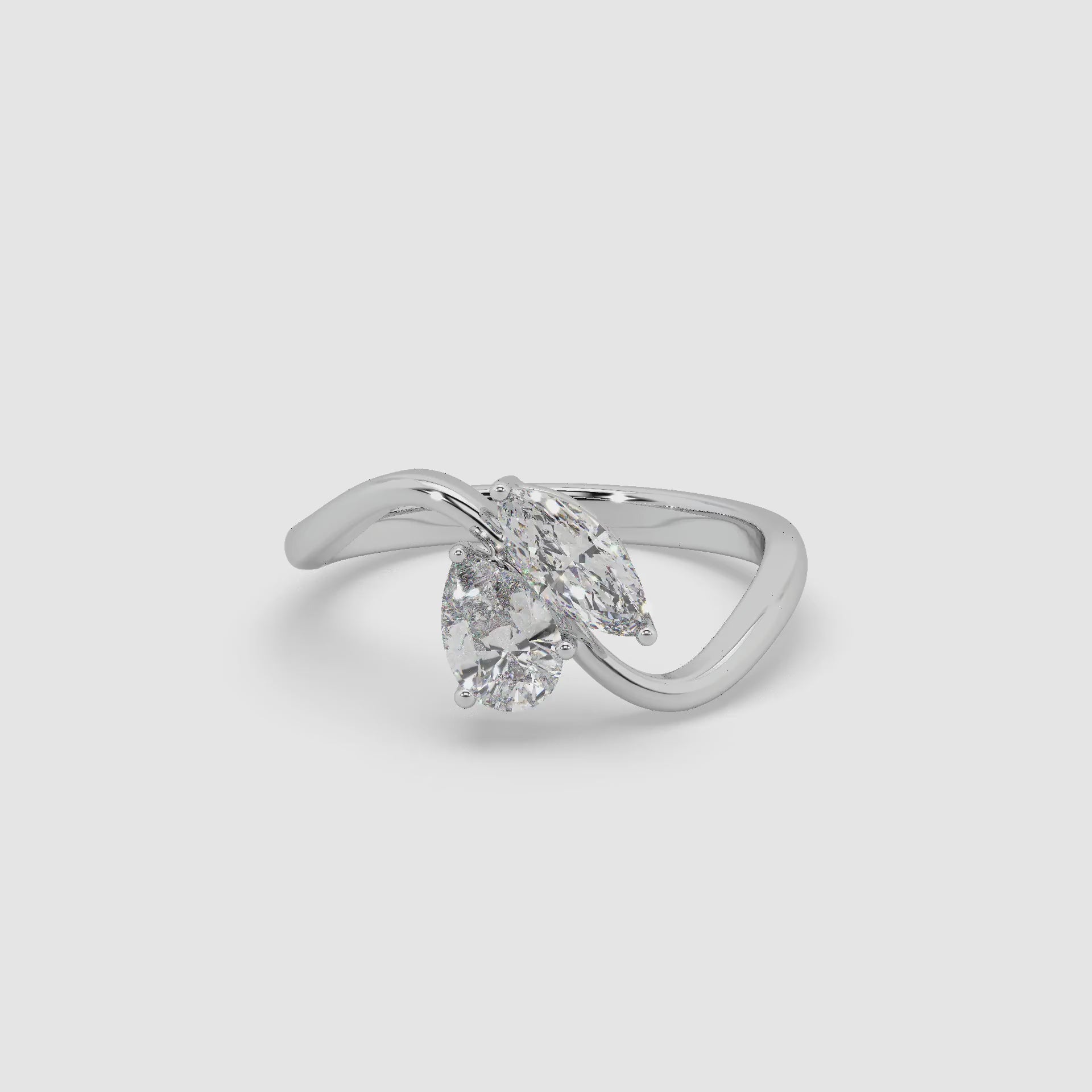 Celebrate her unique style with the distinctive elegance of the Guru Jewel's Fancy Marquise and Pear Shaped Diamond Studded Silver Ring. This exquisite piece beautifully combines two celebrated fancy cuts, offering a sophisticated and artistic sparkle.