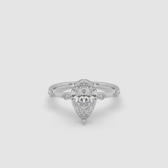 This Pear and Round Diamond Silver Ring for Her is the perfect statement piece for the woman who appreciates detailed craftsmanship and sophisticated luxury. It makes an ideal gift, celebrating her refined taste with enduring elegance and a mesmerizing sparkle.