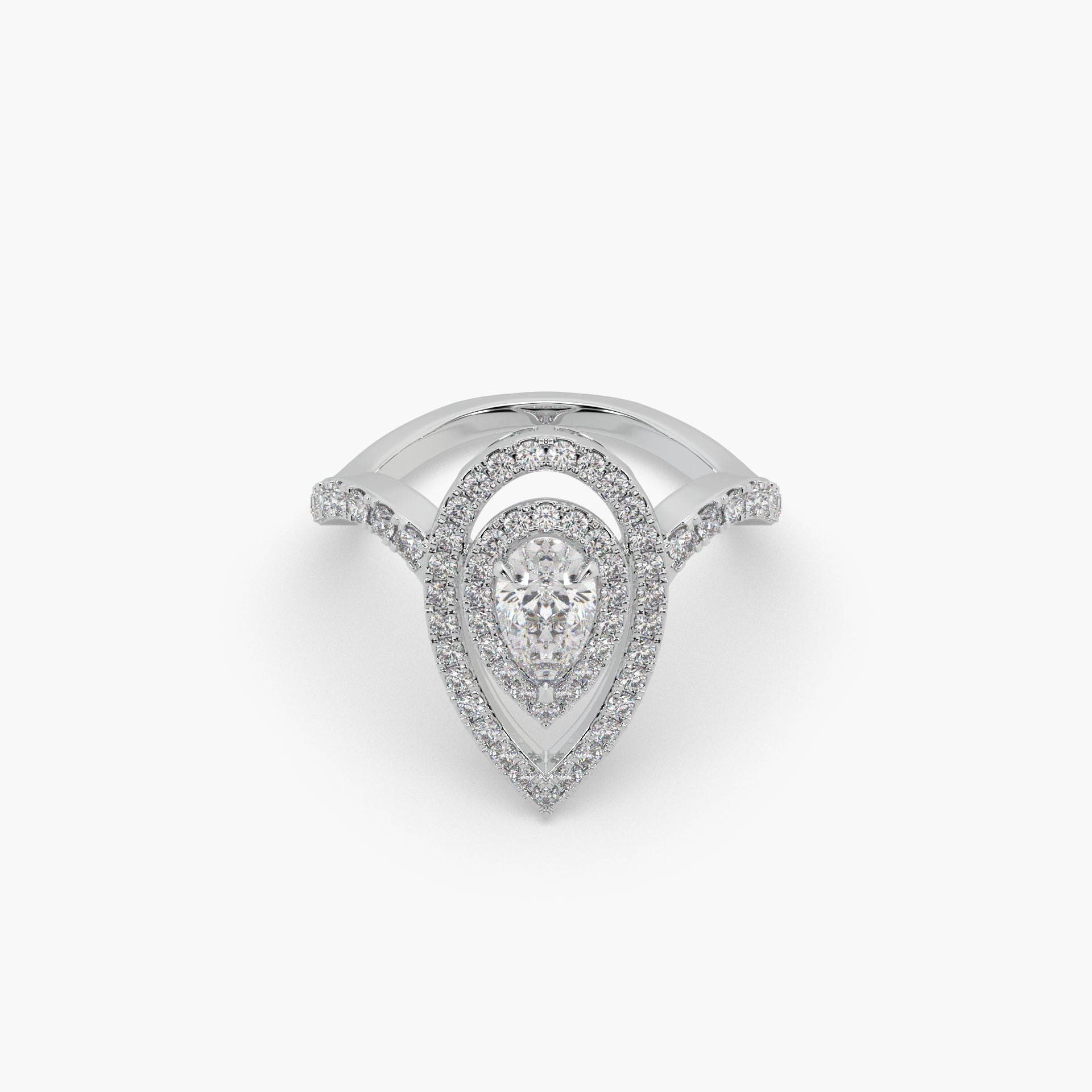 Guru Jewel's Fancy Pear Shaped And Round Diamond Studded Captivating Silver Ring For Her