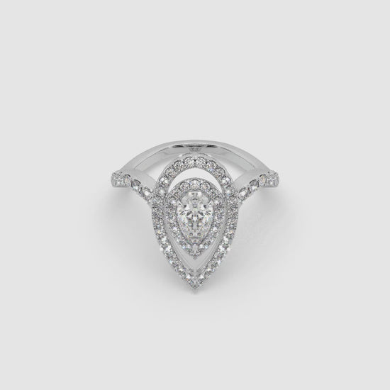 Expertly crafted from radiant 925 sterling silver, this ring showcases a beautiful harmony where the graceful, teardrop elegance of Fancy Pear Shaped Diamonds is perfectly intertwined with the intense, symmetrical fire of Round Diamonds. This imaginative fusion of shapes and the meticulous setting ensure a continuous, vibrant shimmer, creating a truly captivating and unique look.
