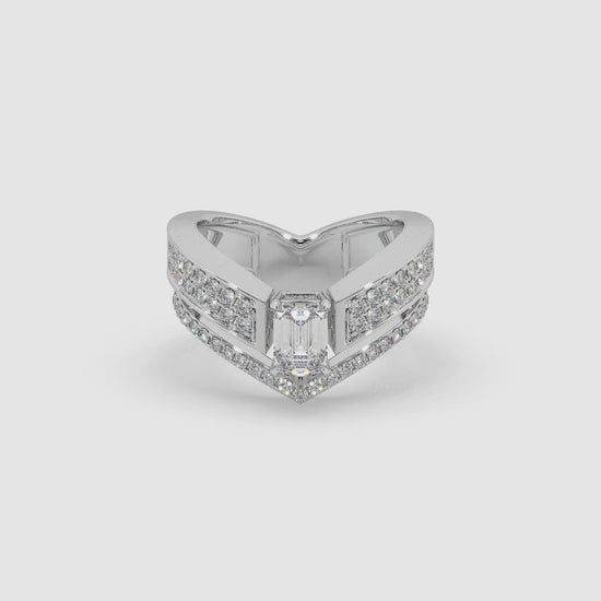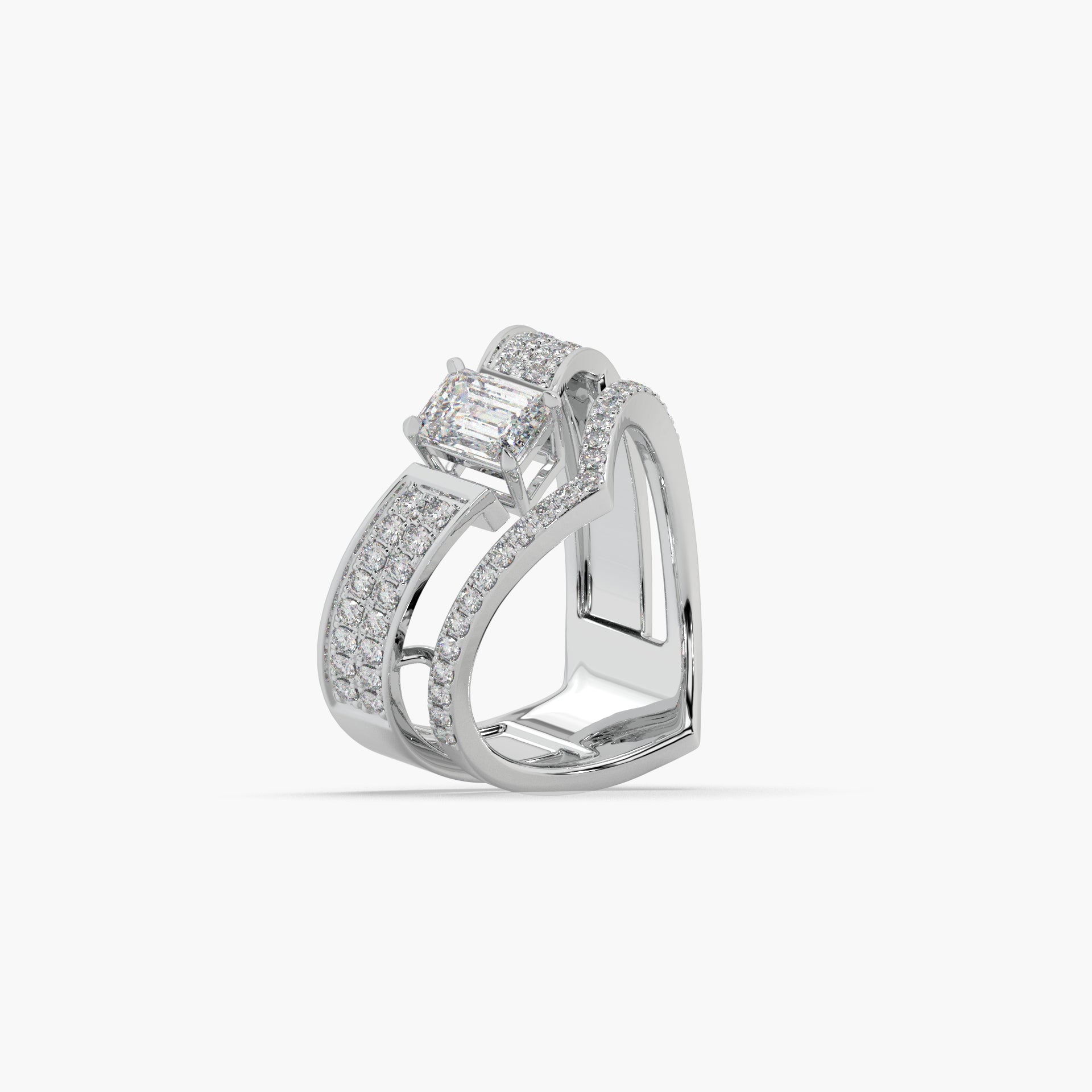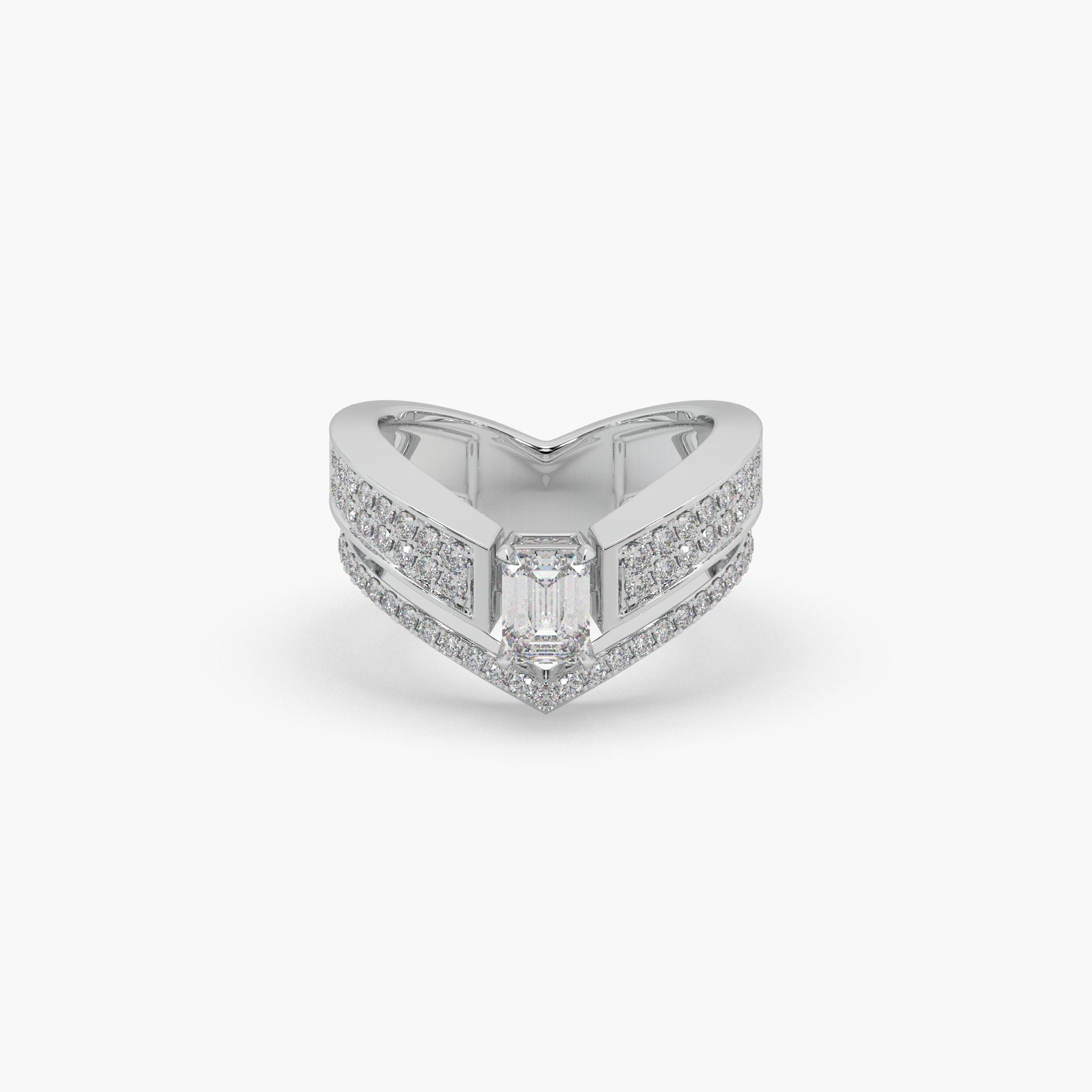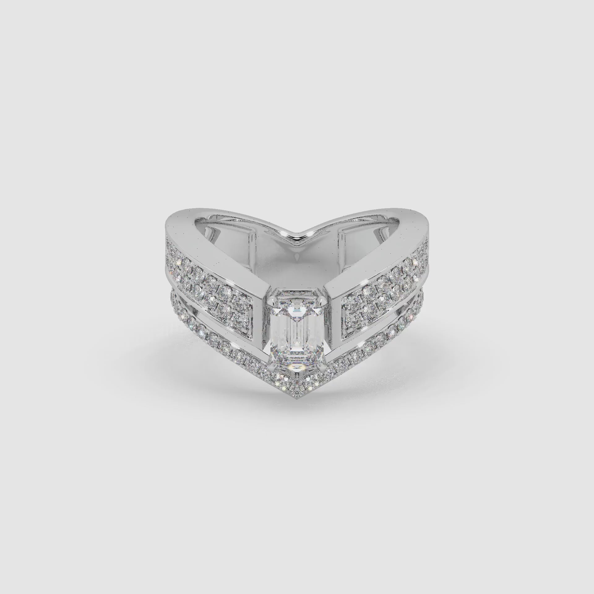 Adorn her hand with the rich, distinguished beauty of the Guru Jewel's Emerald and Round Diamond Studded Silver Ring. This elegant piece offers a timeless blend of vibrant color and dazzling brilliance.