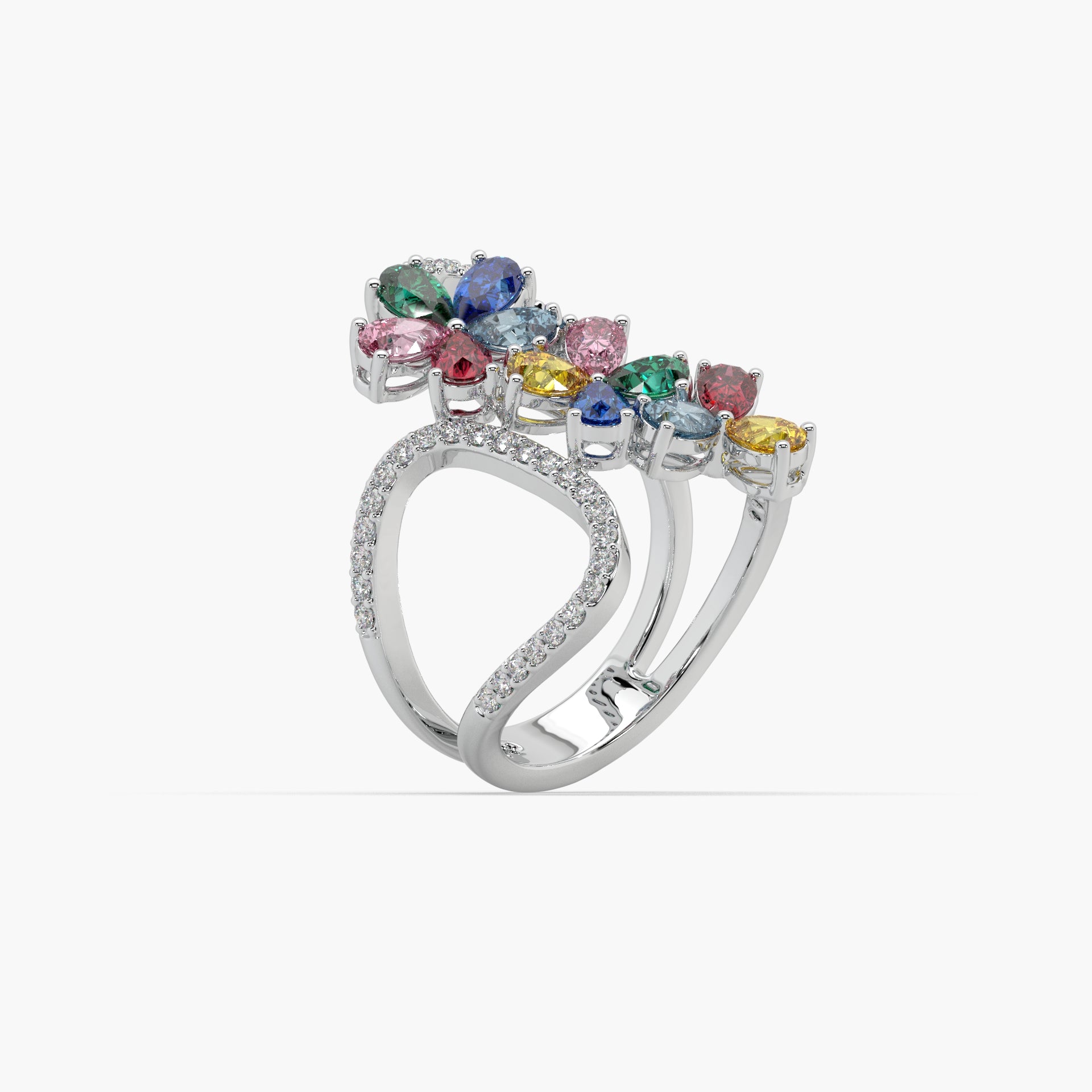 Expertly crafted from radiant 925 sterling silver, this ring features a stunning arrangement of Multi Color Stones (such as sapphires, rubies, or emeralds) alongside brilliant Diamond Studs. The combination of various vibrant colors with the timeless fire of the diamonds creates an intensely captivating, multi-faceted look that is both luxurious and uniquely spirited.