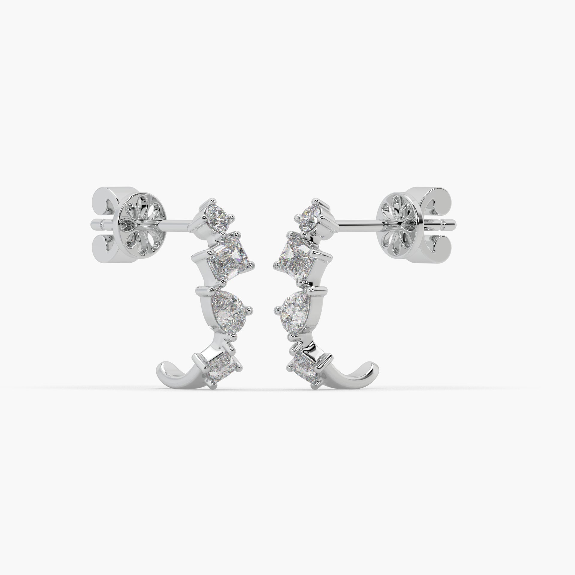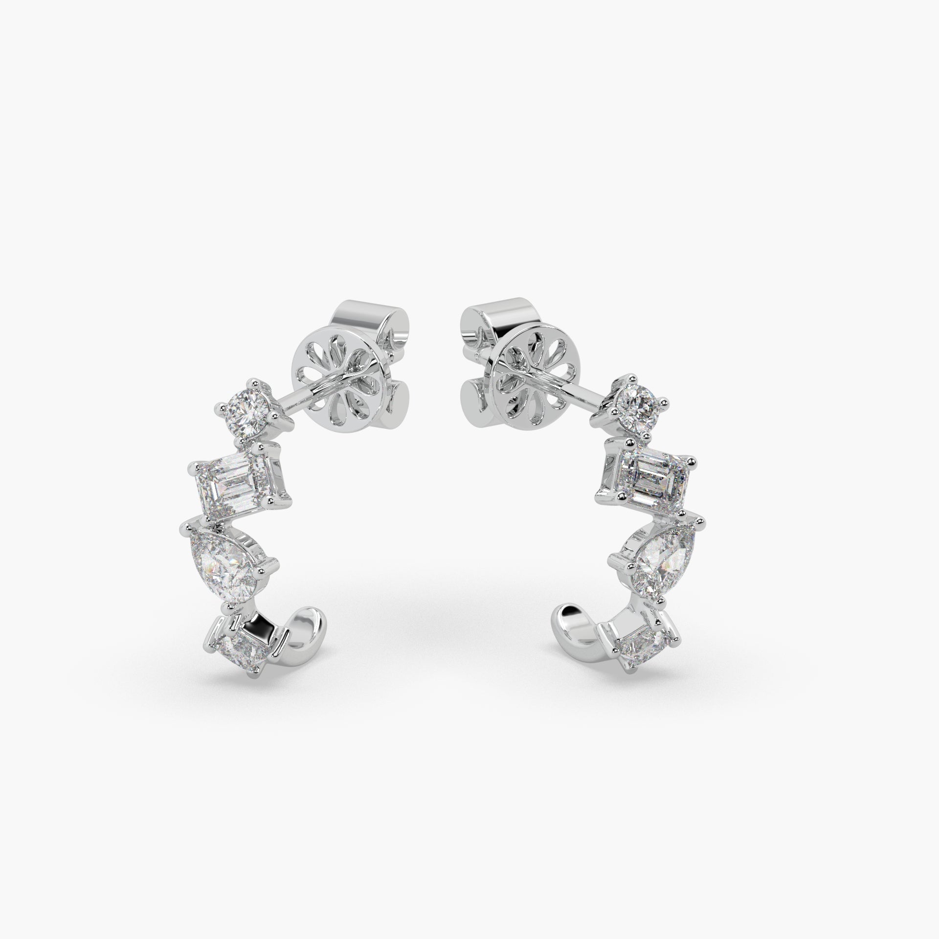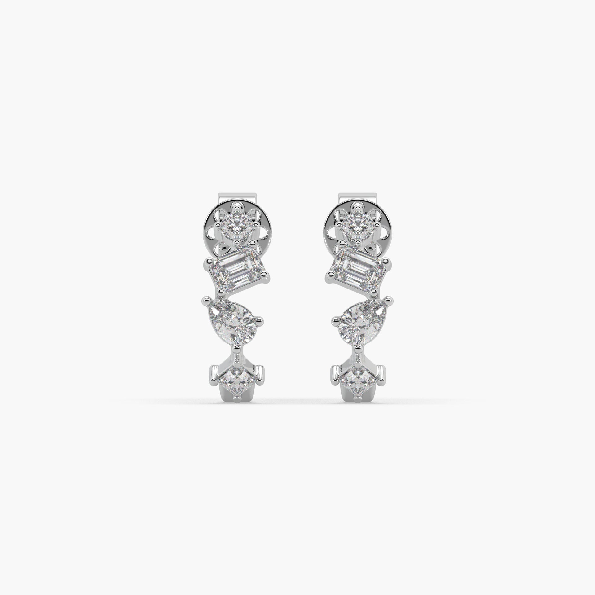 Meticulously crafted from high-polish 925 sterling silver, each earring showcases a blend of Multi Shape Diamonds—such as round, baguette, princess, or pear cuts—expertly positioned to maximize their collective brilliance. The interplay between the different shapes creates an intricate, fascinating visual texture that is both sophisticated and one-of-a-kind.