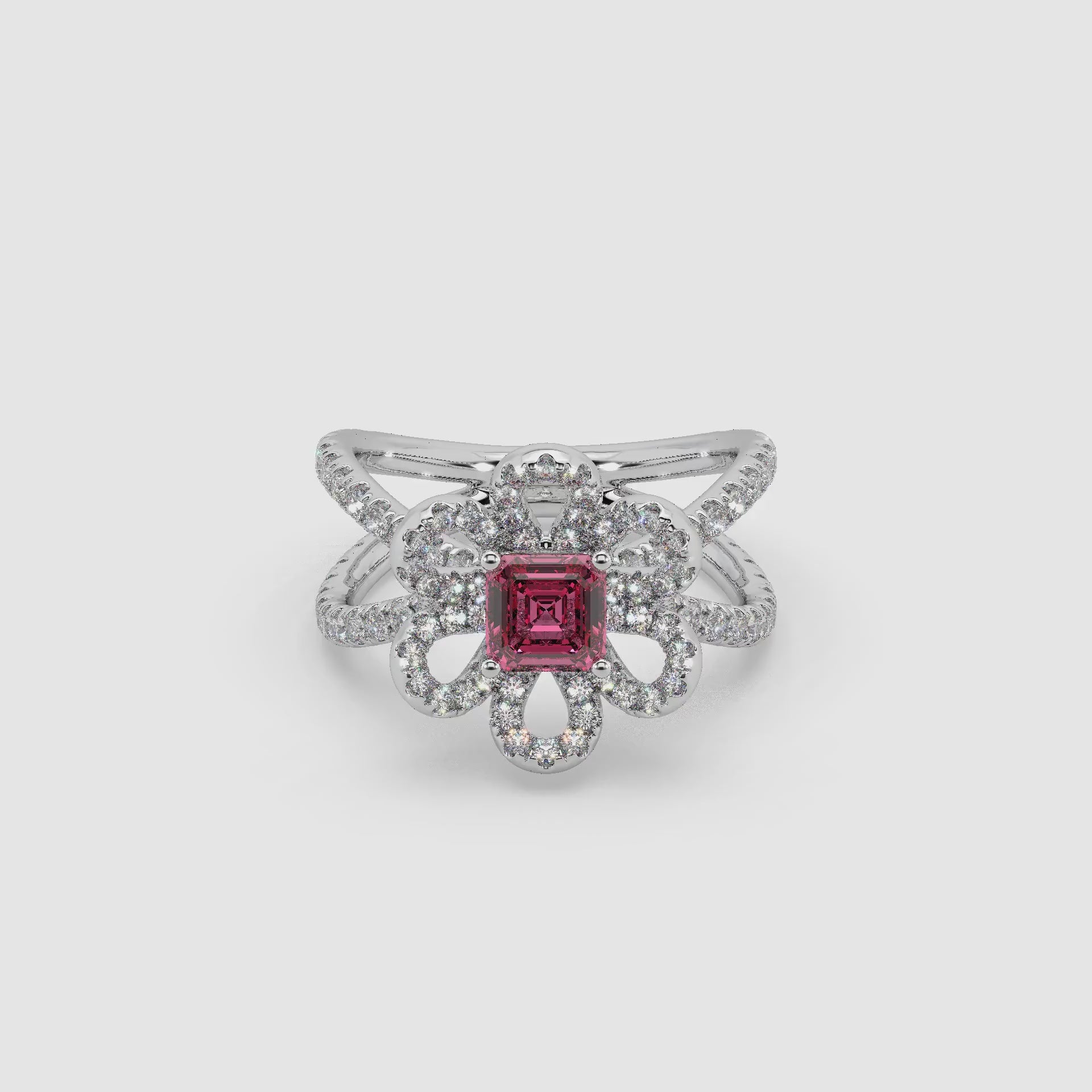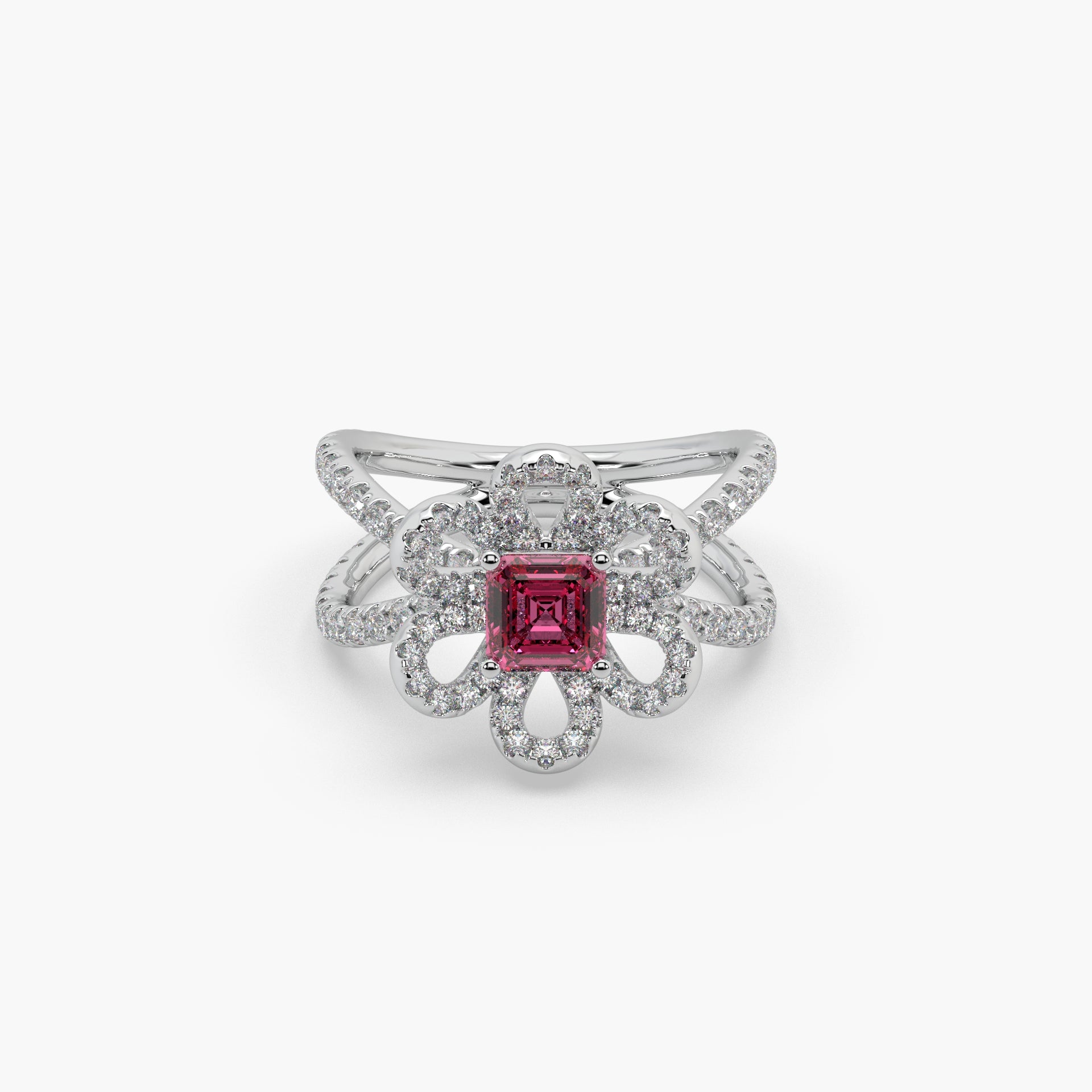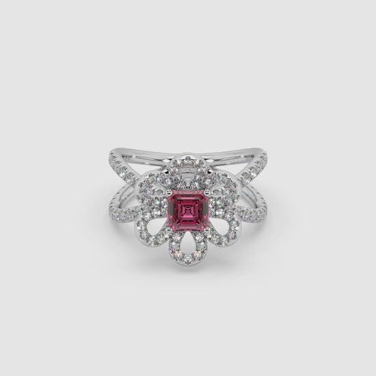 Adorn her hand with the passionate elegance and striking color of the Guru Jewel's Red Stone and Diamond Studded Silver Ring. This beautiful piece is designed to capture attention, brilliantly pairing a rich red gemstone with the sophisticated sparkle of diamonds.