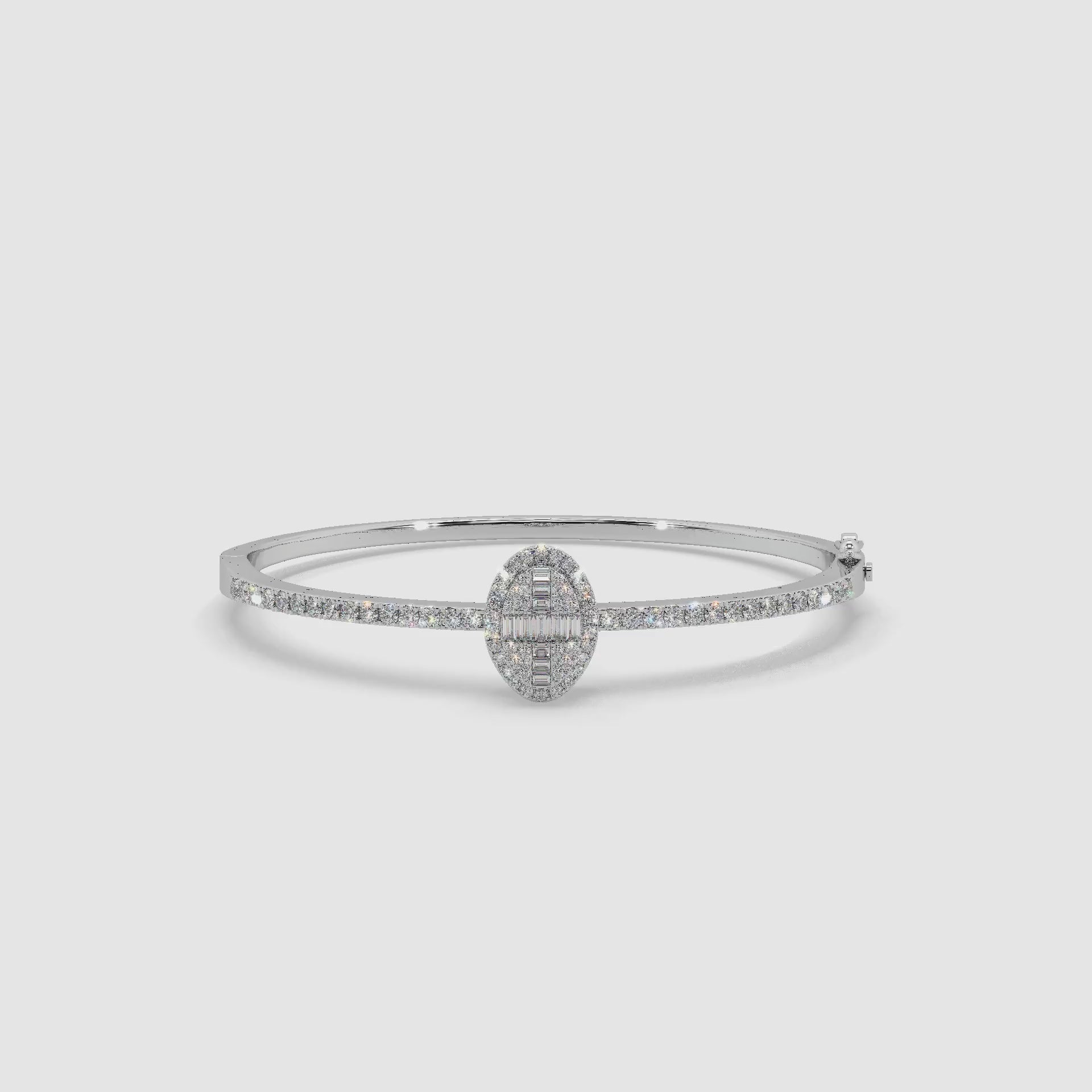 Celebrate her distinguished style with the Guru Jewel's Exclusive Round and Baguette Diamond Studded Silver Bracelet. This sophisticated piece is defined by its superior craftsmanship and a unique, artistic setting of mixed diamond cuts, ensuring an exclusive look unlike any conventional design.