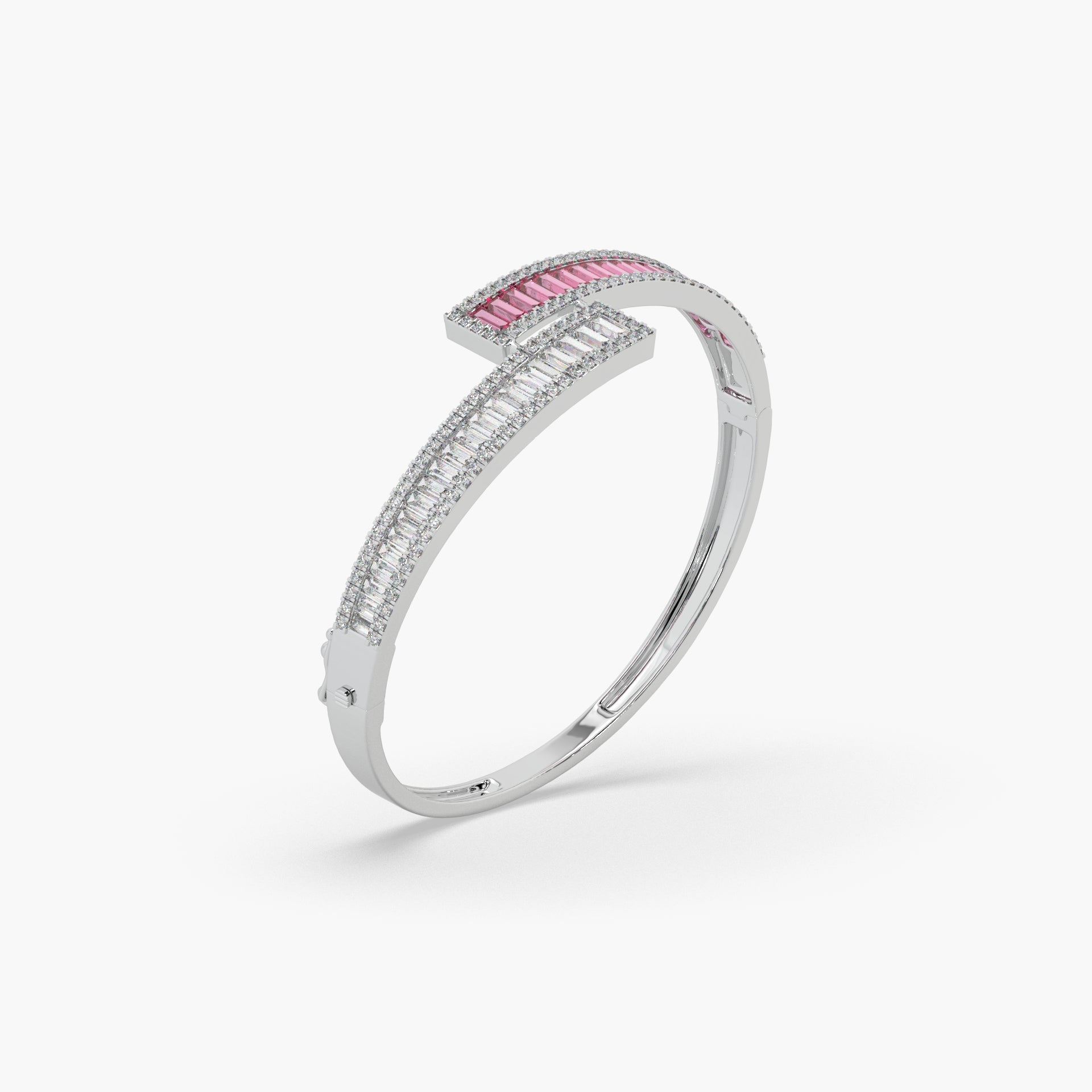 Discover the unique, sophisticated allure of the Guru Jewel's Fascinating Round and Baguette Diamond Studded Silver Bracelet. This exceptional piece is designed with an imaginative, mixed-cut setting that maximizes sparkle, creating a truly mesmerizing and captivating effect as it encircles her wrist.
