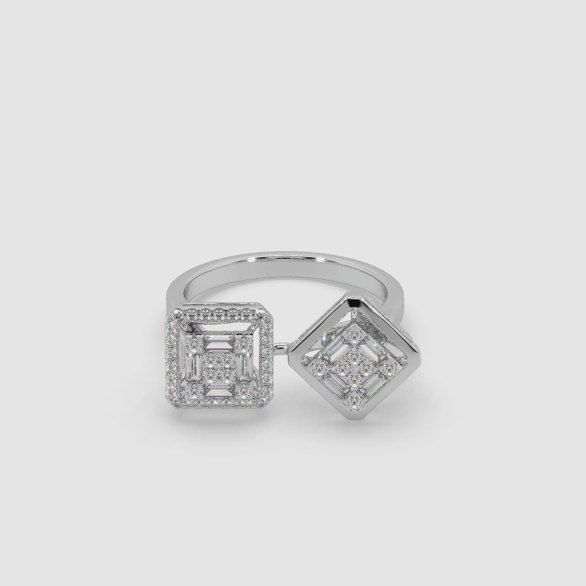 Adorn her hand with the unique, contemporary elegance of the Guru Jewel's Round and Baguette Diamond Studded Silver Ring. This exquisite piece offers a sophisticated blend of classic brilliance and modern, geometric style.