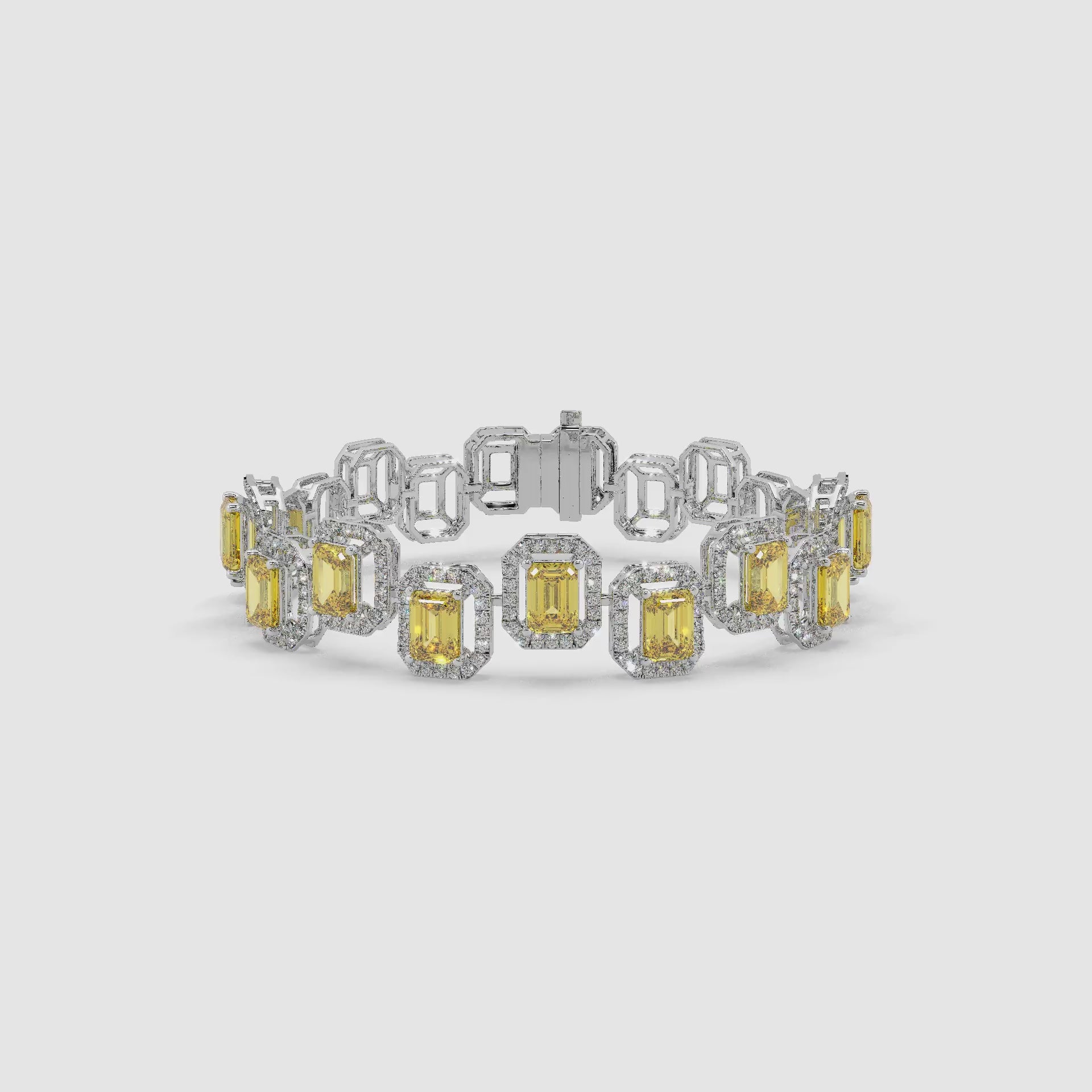 Expertly crafted from radiant 925 sterling silver, this bracelet showcases a stunning combination of stones. It features the rich, unique beauty of Fancy Emerald Studs (or emerald-hued stones) perfectly intertwined with the intense, symmetrical fire of Round Diamonds. This artistic fusion of color and shape creates a dazzling, multidimensional shimmer and a sophisticated, utterly attractive design that stands out effortlessly.