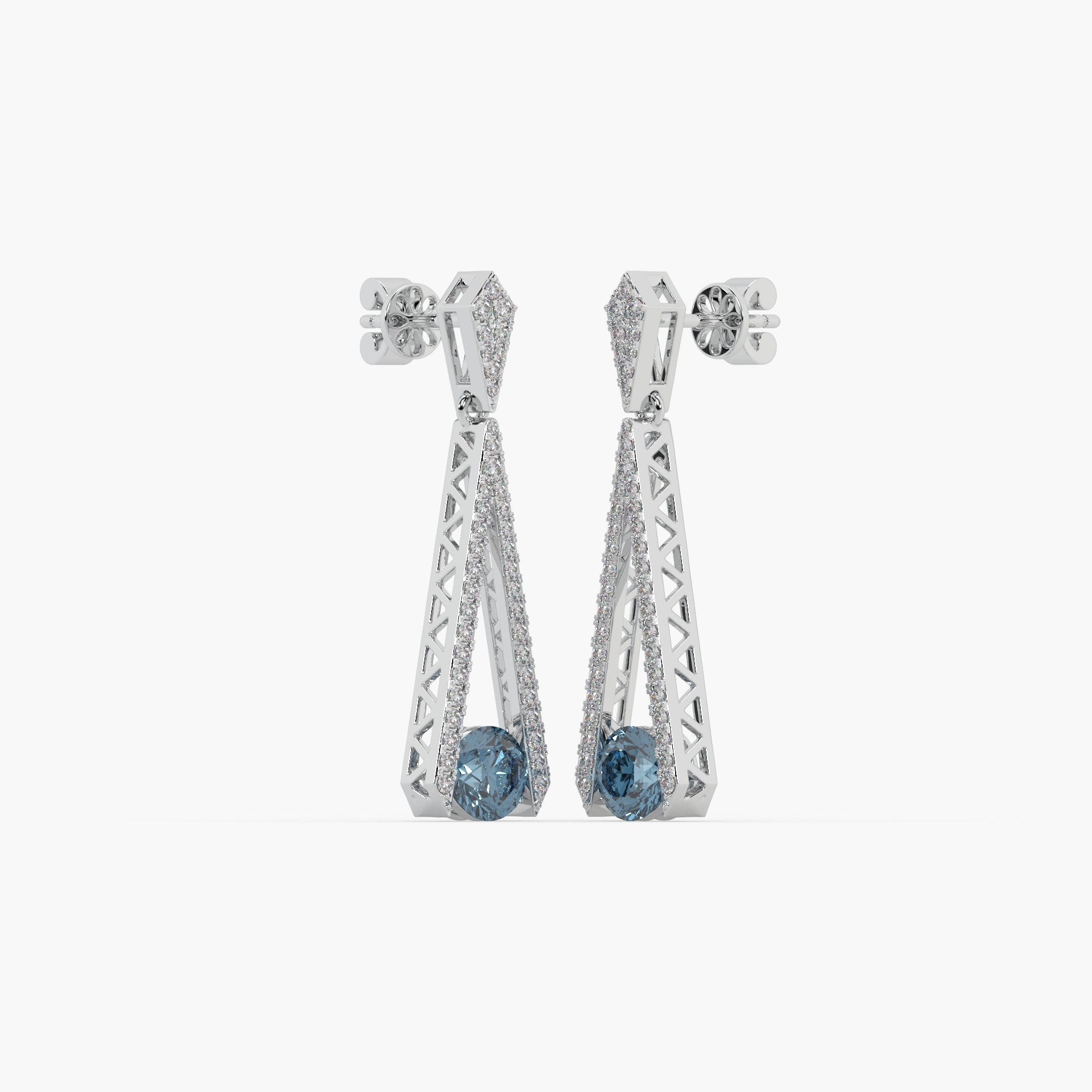 - Stones: Vibrant Blue Stone(s) and Brilliant Round Diamond Studs