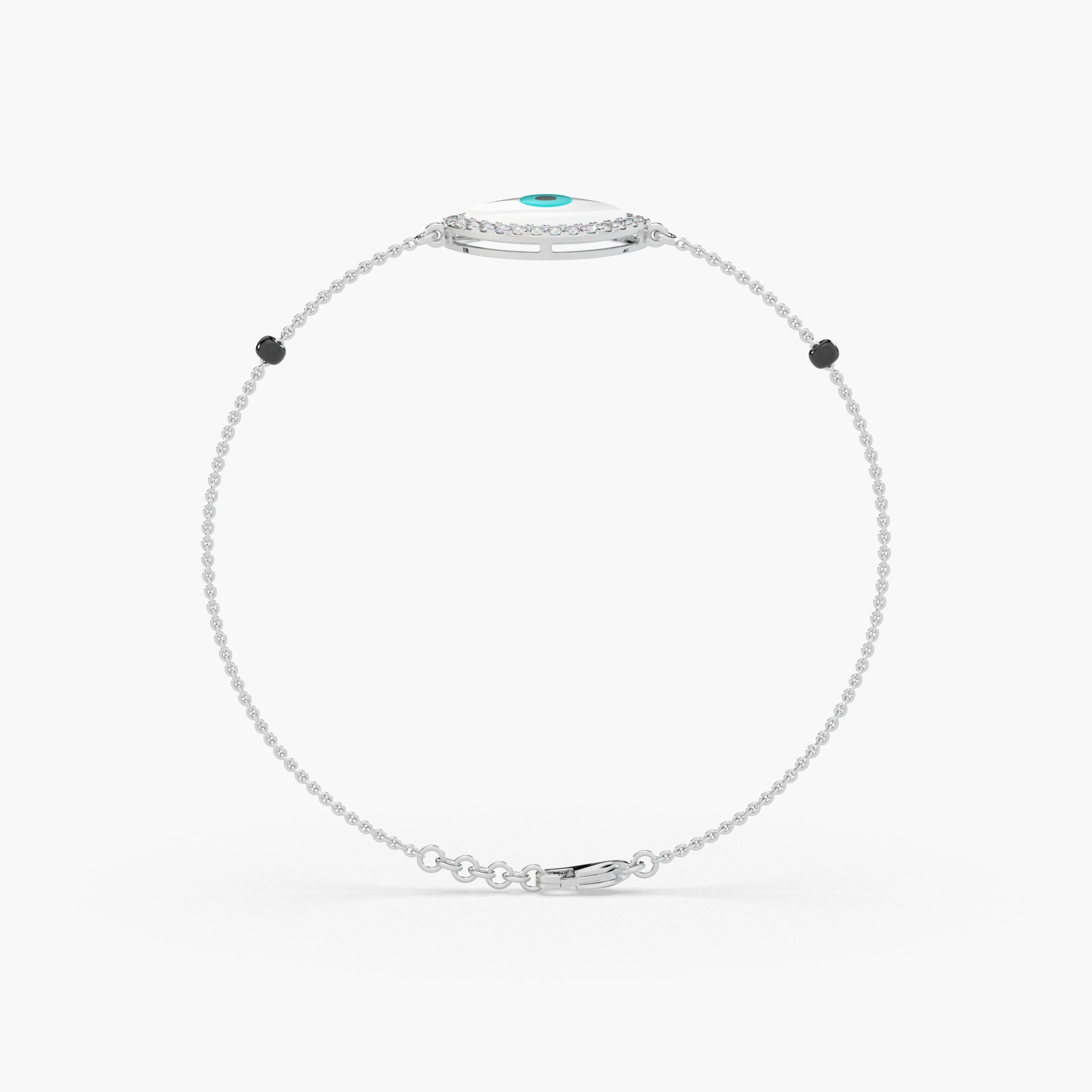 Meticulously crafted from high-quality, polished 925 sterling silver, the bracelet boasts a comfortable "loose" design that drapes elegantly and fluidly on the wrist. The dazzling Round Diamond sparkle is beautifully contrasted by the deep, protective gaze of the Evil Eye Stone, creating an astonishing silver diamond bracelet that is both a fashion statement and a meaningful talisman.
