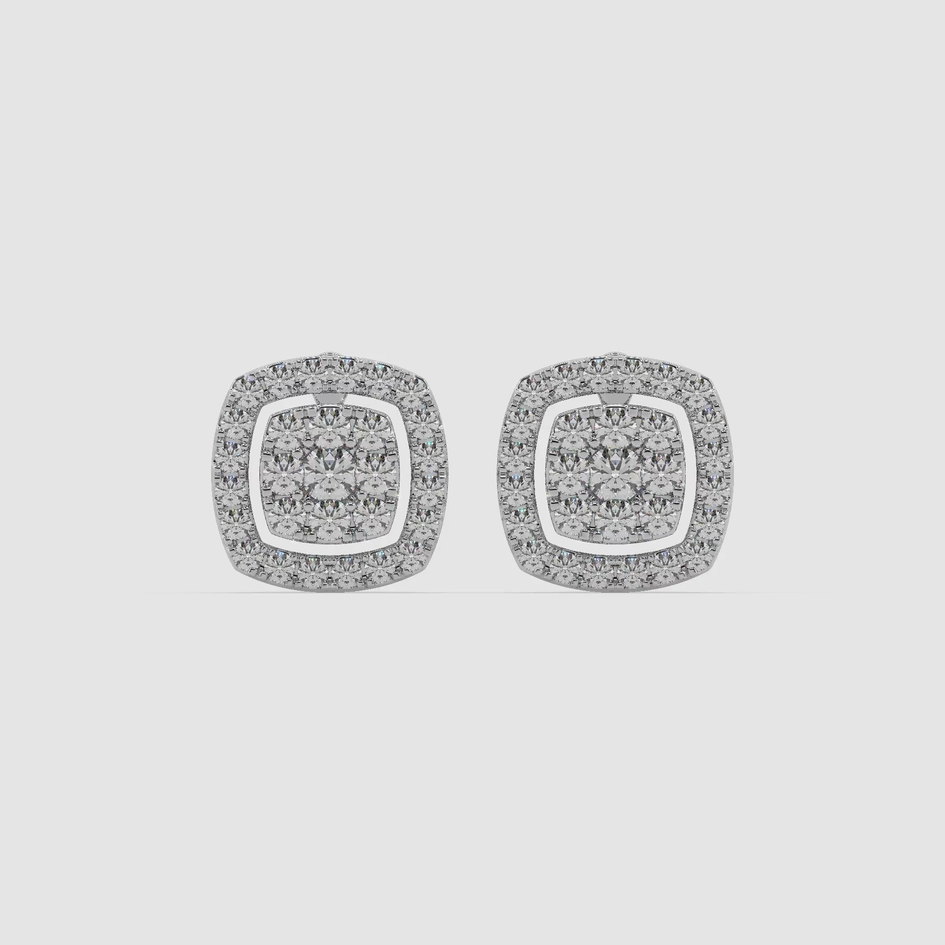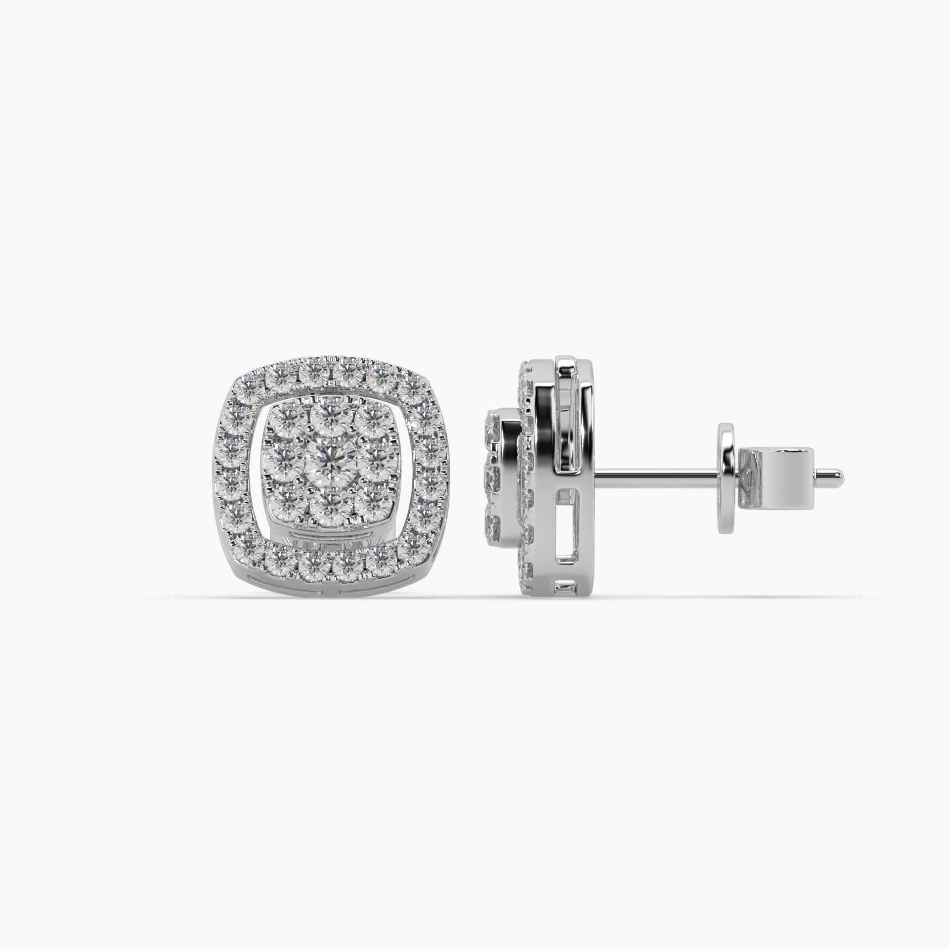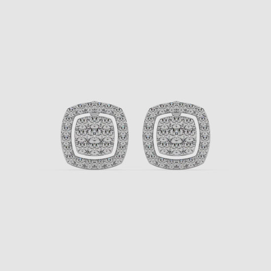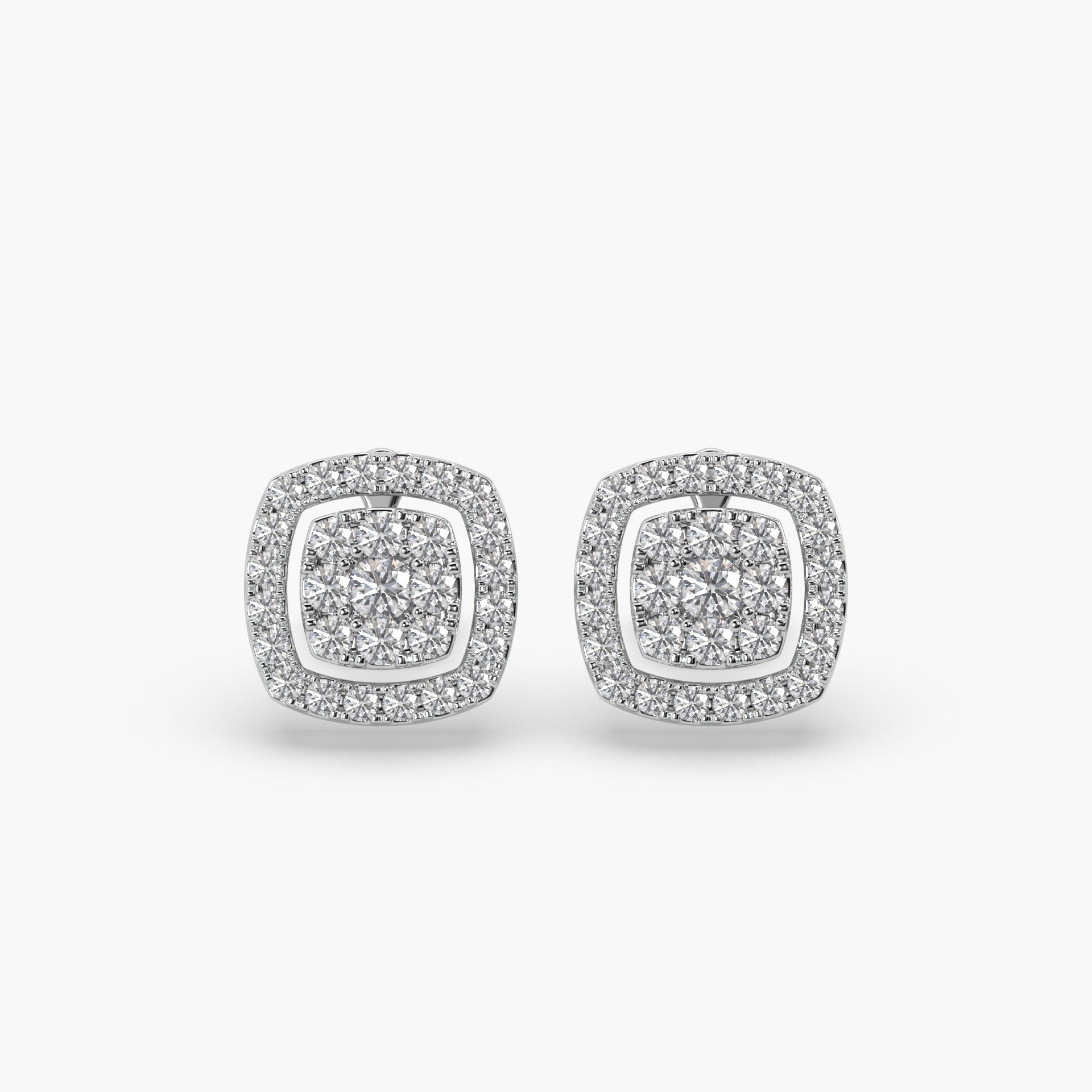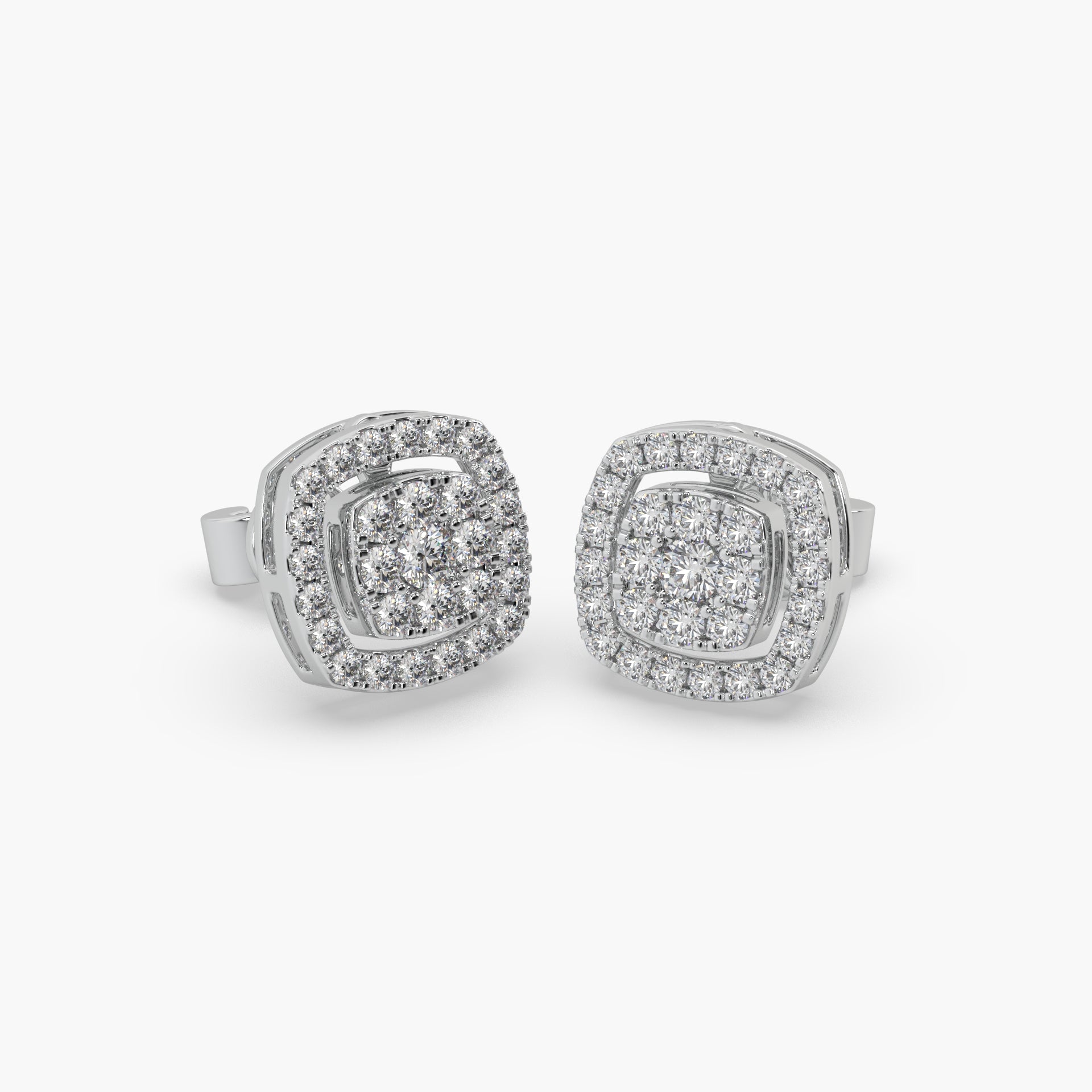 Expertly crafted from radiant 925 sterling silver, these earrings feature a bold, modern Square Shape silhouette. The entire surface is meticulously paved or clustered with brilliant Round Diamond Studs. The diamonds are set in a specialized pattern that maximizes their combined fire, filling the geometric shape with a continuous, vibrant sparkle that is instantly recognizable and utterly exclusive.