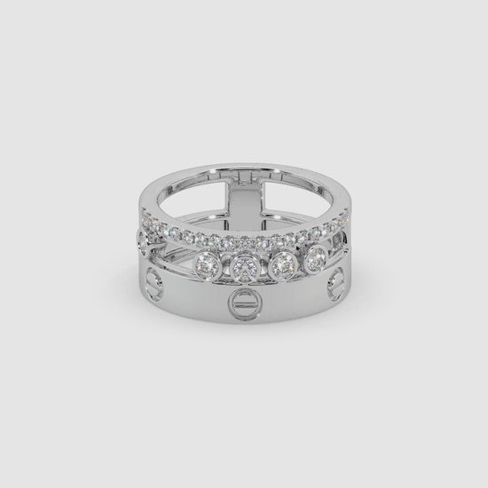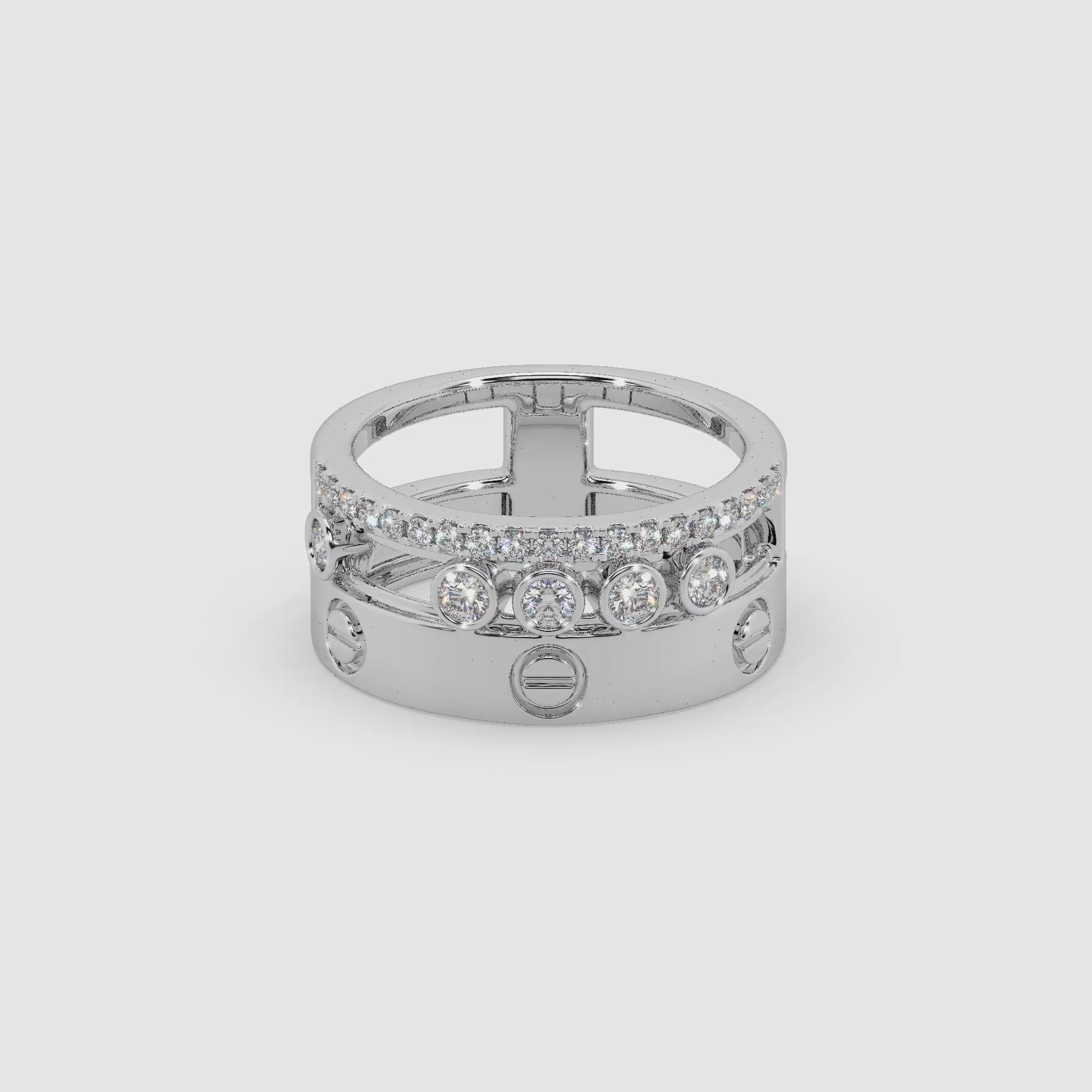 Expertly crafted from radiant 925 sterling silver, this ring features a chic, artistic arrangement of brilliant Round Diamond Studs. The diamonds are meticulously set in a pattern that reflects current fashion trends, ensuring a dazzling, sophisticated sparkle that complements any ensemble, from office wear to evening attire.