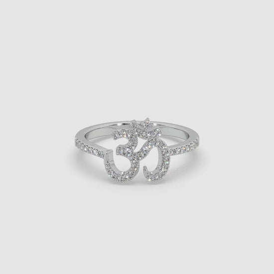 Expertly crafted from radiant 925 sterling silver, this ring prominently features the iconic and revered "OM" symbol. The graceful contours of the symbol are either framed or meticulously paved with brilliant Round Diamond Studs. The dazzling sparkle draws the eye to the deep, spiritual significance of the design, ensuring a sophisticated and meaningful look.