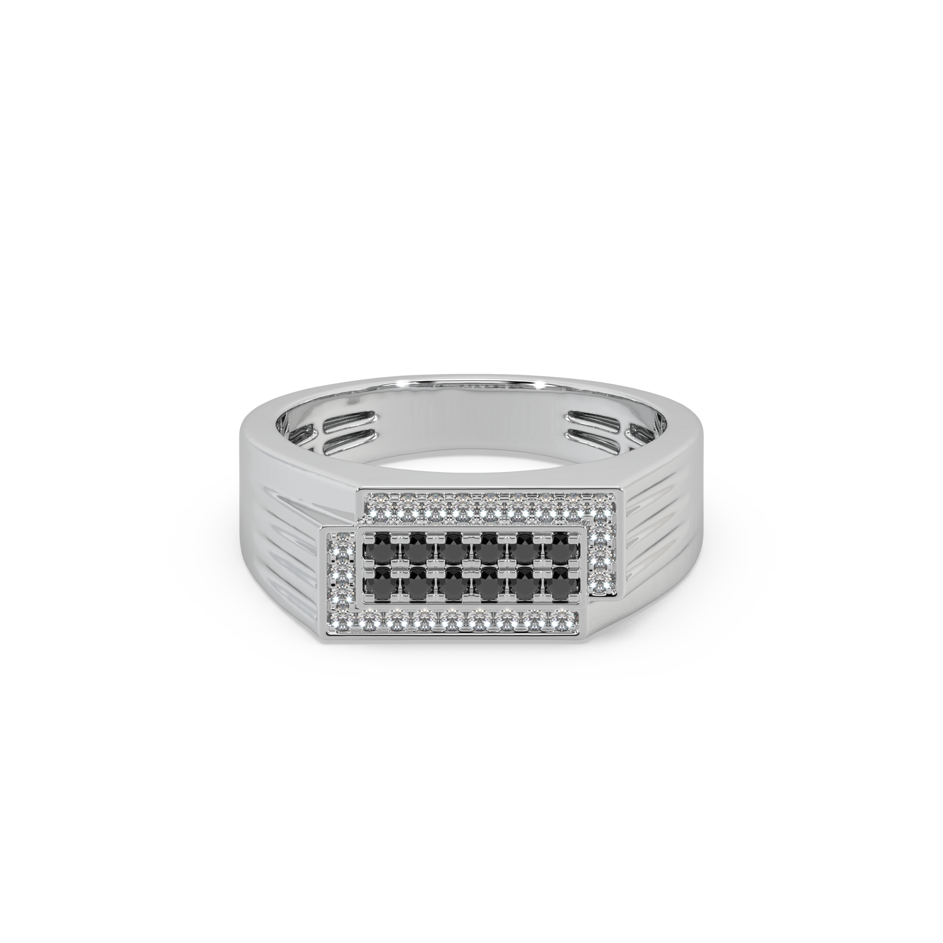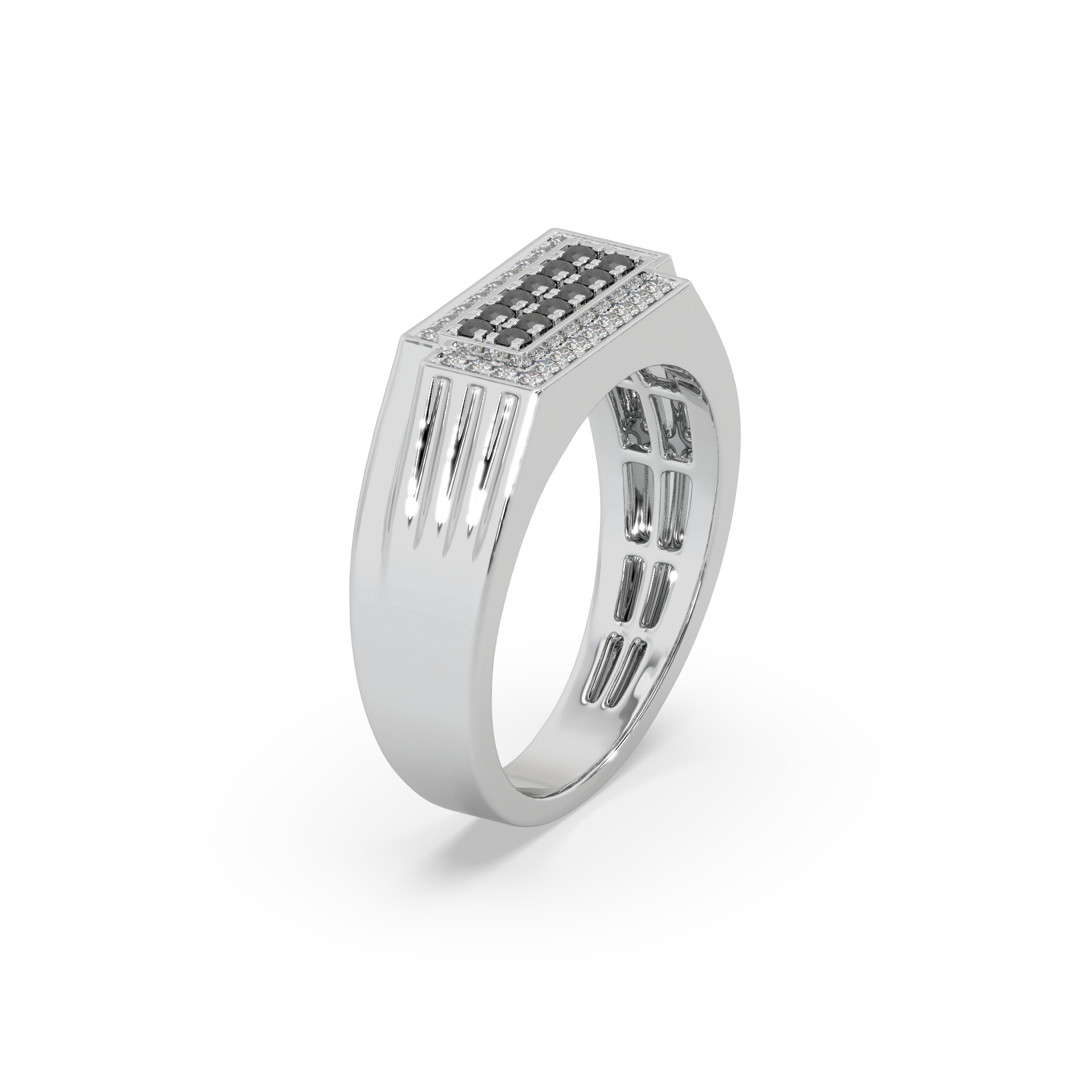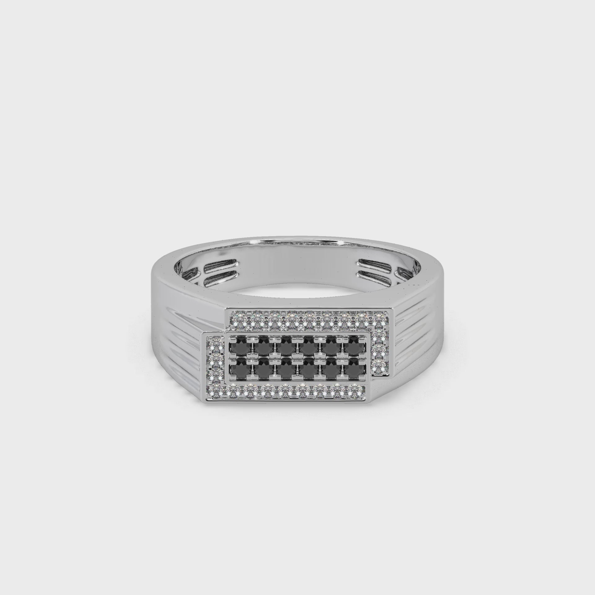 This Impressive Black Diamond and Diamond Silver Gents Ring is the perfect accessory—ideal as a strong wedding band, a sophisticated fashion piece, or a celebration of a significant personal milestone. It makes an excellent, memorable gift for him, symbolizing strength, confidence, and highly sophisticated taste.