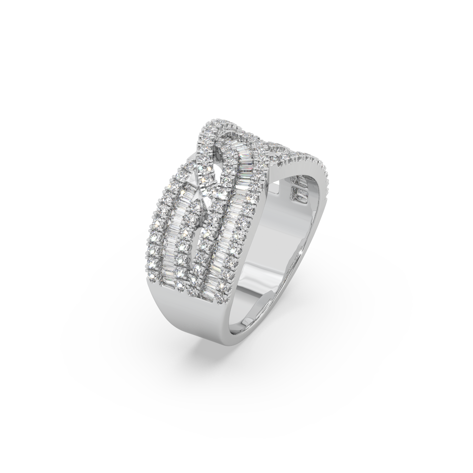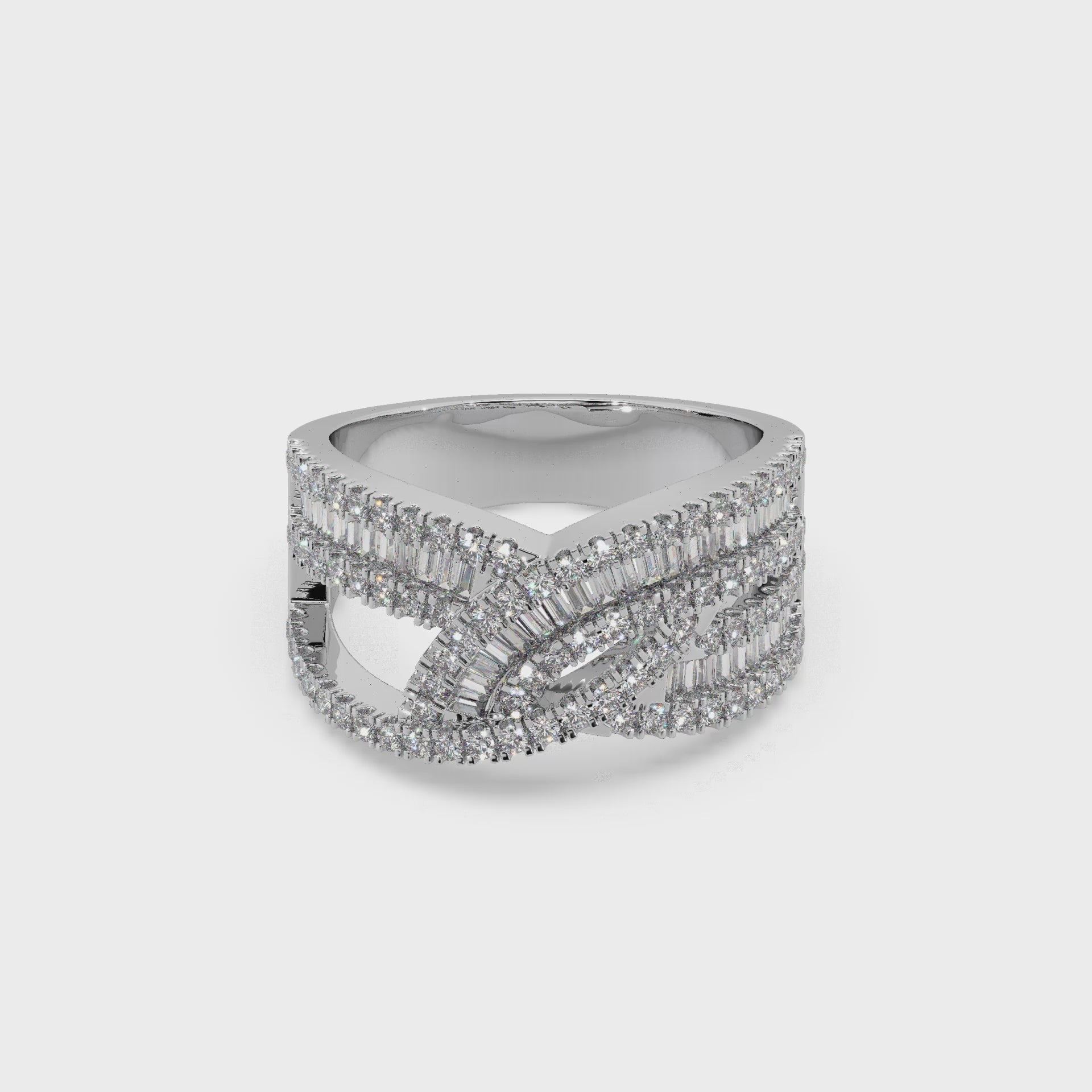 Exclusive Channel-Set Baguette 925 Silver and Diamond Studded Ladies Ring For Her